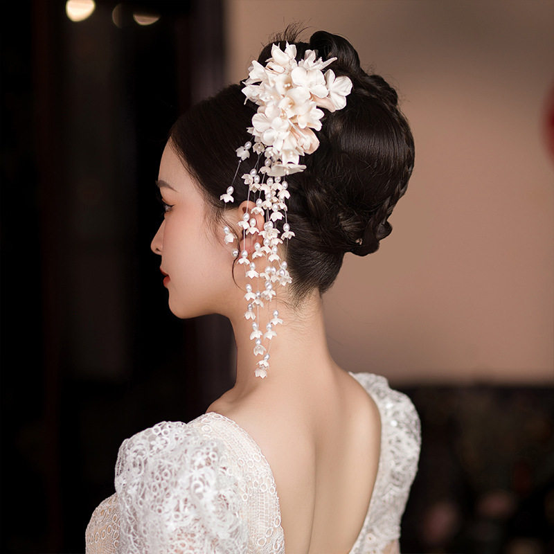 韩式超仙头饰铃兰花花朵手工流苏发夹复古婚纱发饰森系新娘饰品