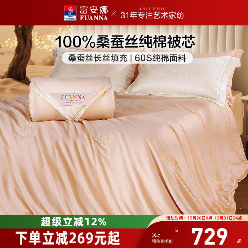 富安娜被子100%蚕丝被春秋被子母被二合一四季被芯冬被夏被空调被