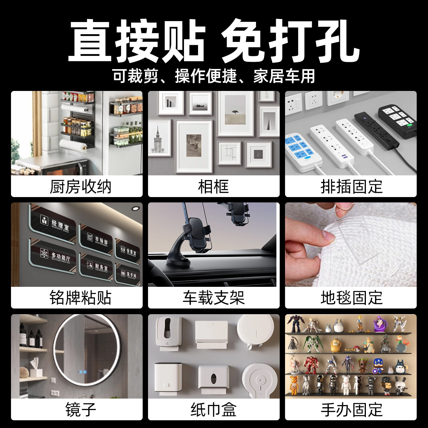 米乐奇纳米双面胶胶带加厚贴片相框固定无痕魔力胶贴强力万次水洗透明不留痕捏捏乐墙面高粘度加粘两面地毯胶