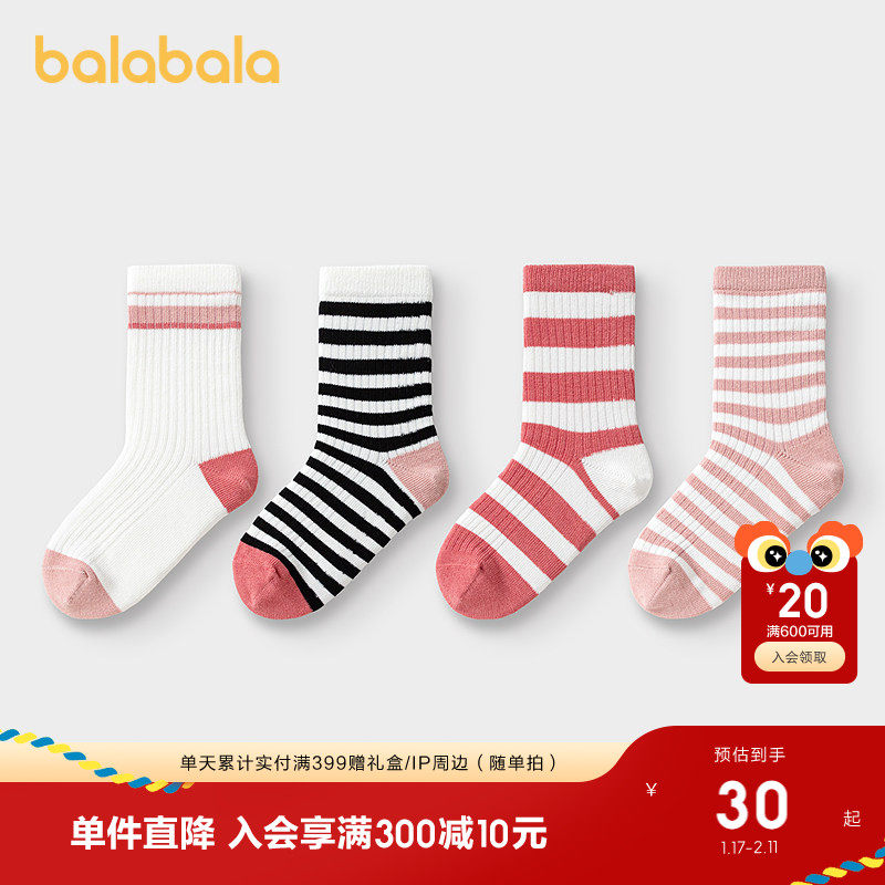 巴拉巴拉儿童袜子棉春秋新款潮流条纹小中大童男女童中筒袜四双装
