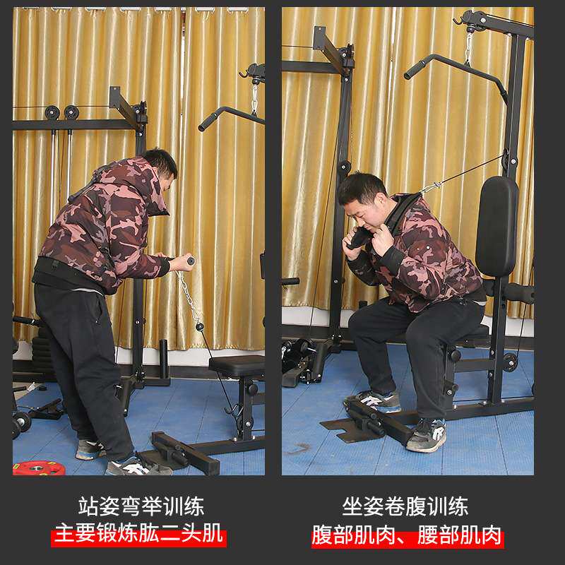 双垫颈部拉绳高低拉综合训练器多功能划船机背肌单人站综合训练器