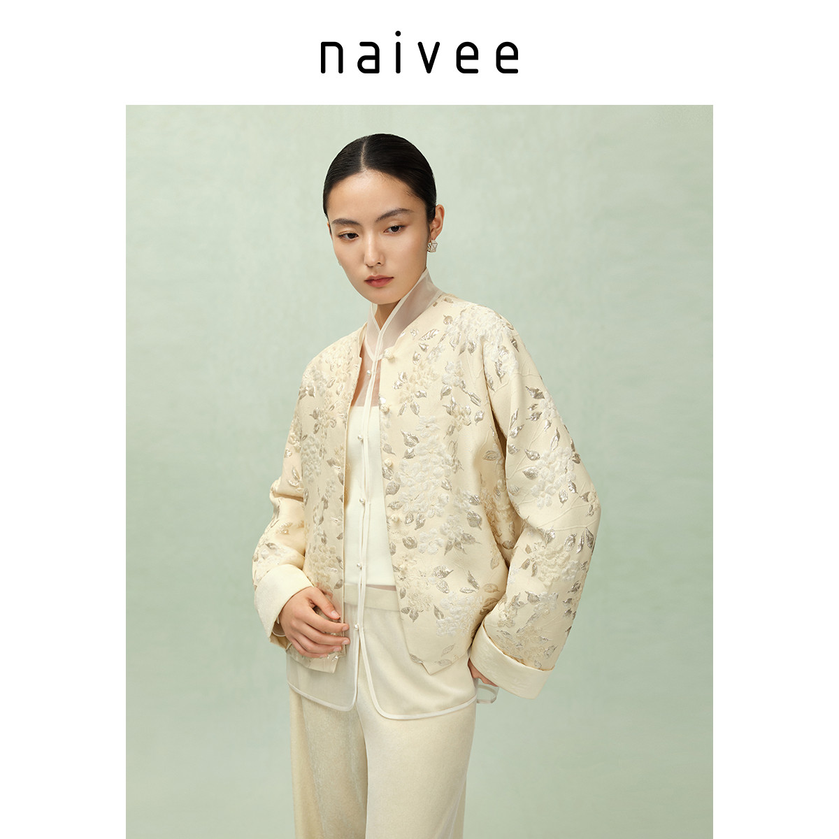 金玉满堂新中式』商场同款naivee纳薇25秋新款真丝国风提花外套女