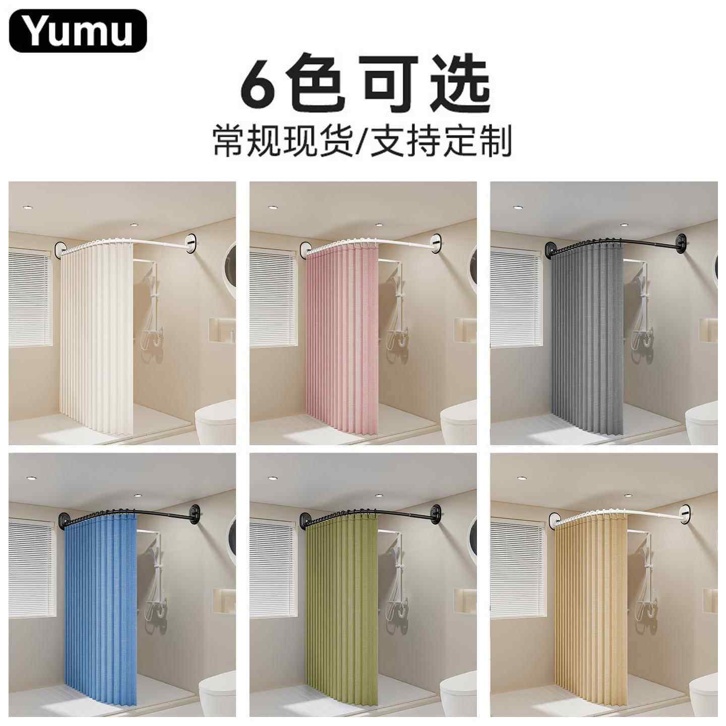 加厚隐形折叠浴帘防水防霉新升级吸盘弧形伸缩杆卫生间干湿分离