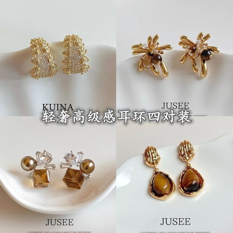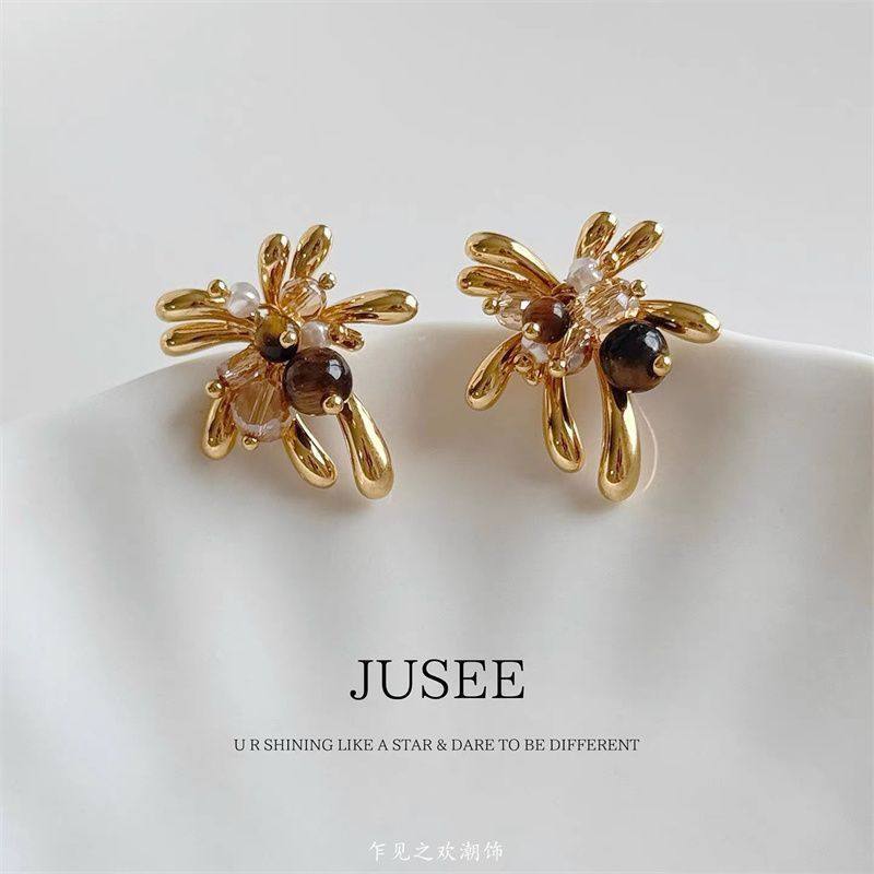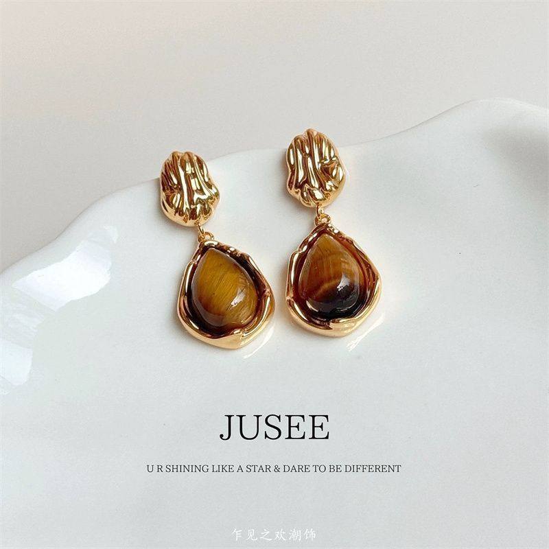 焦糖栗子美拉德风虎眼石椭圆耳钉女氛围感复古秋冬耳环耳饰2025新