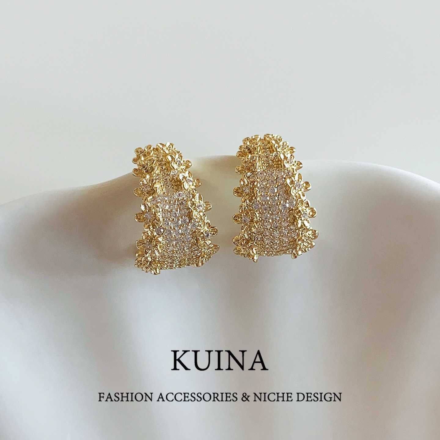 金色微镶满钻耳钉女精致百搭轻奢高级感圈圈耳环设计感独特耳饰品