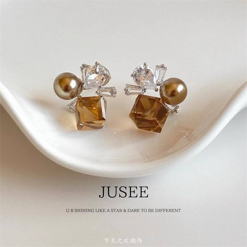 韩系爆款简约方糖珠珠耳钉轻奢小众百搭气质几何形耳环小香风耳饰