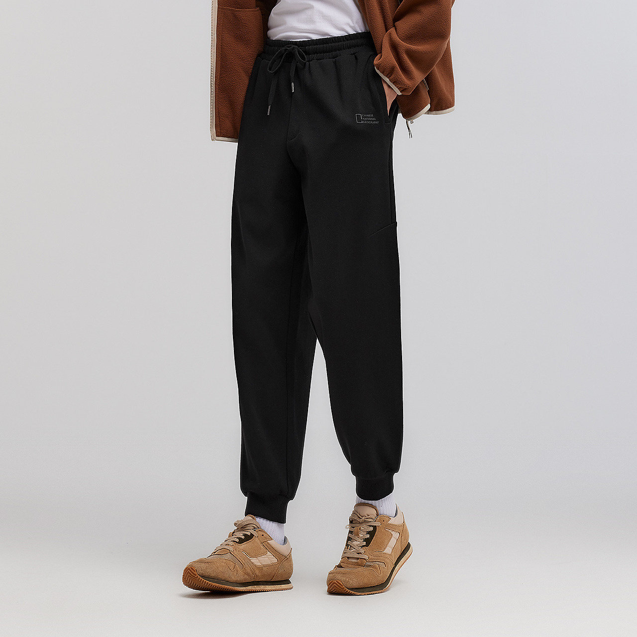 纯色宽松锥形束脚裤 简约百搭抽绳裤