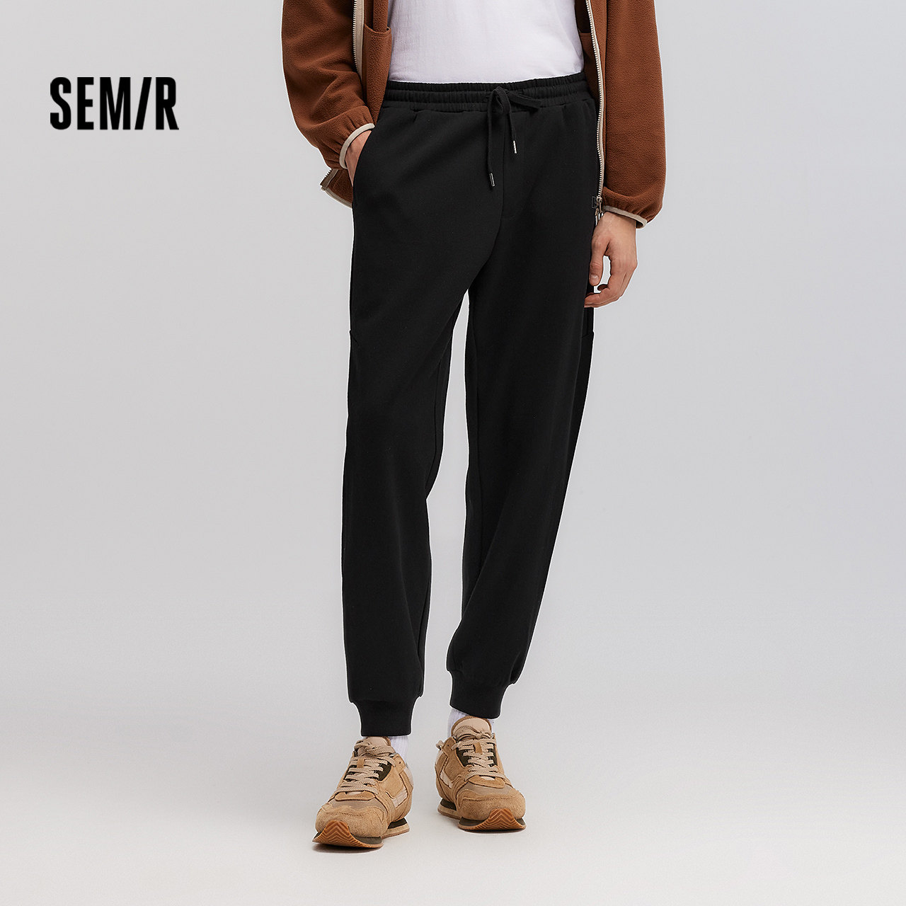 森马休闲裤男春宽松锥形束脚裤纯色基础简约百搭抽绳裤子显瘦显高
