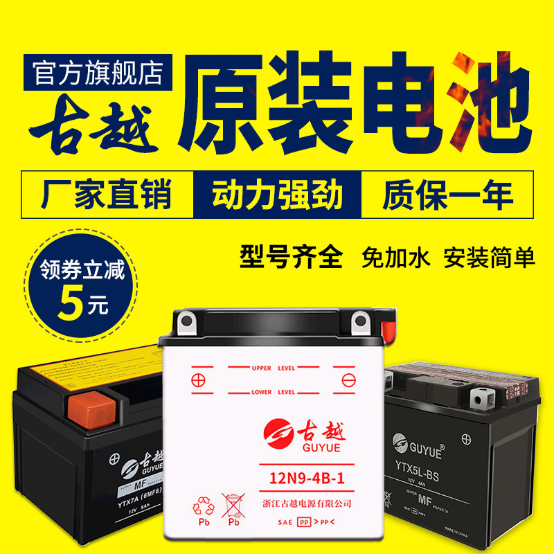 古越摩托车电瓶12v9a免维护干蓄电池125弯梁踏板车通用加水型7ah