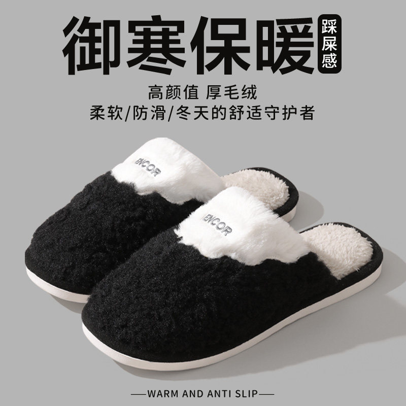 红豆踩屎感棉拖鞋女士秋冬季室内家居2025新款毛绒保暖情侣棉拖男
