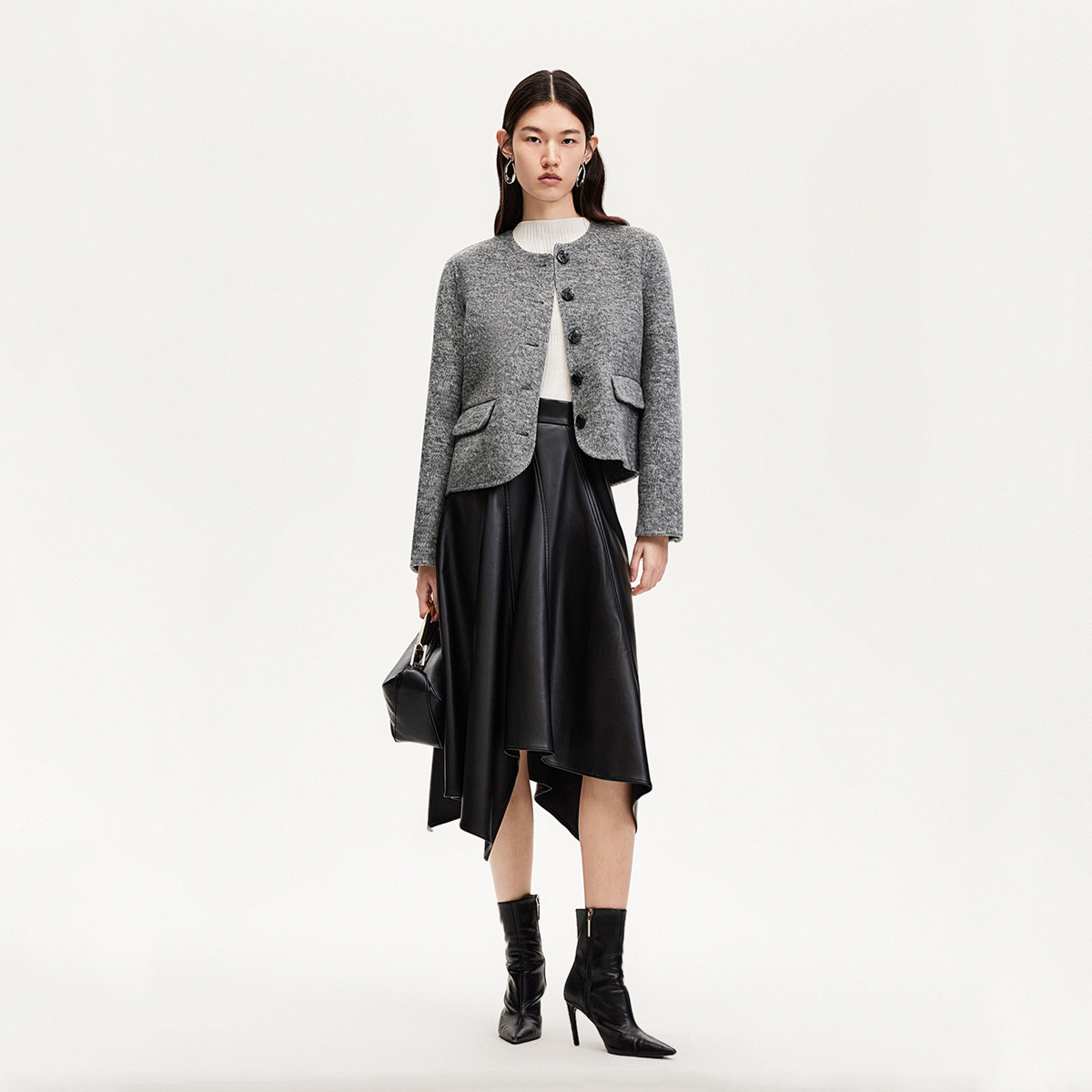 Vero Moda毛呢外套女2025秋冬新款圆领单排扣花色短外套32534T003