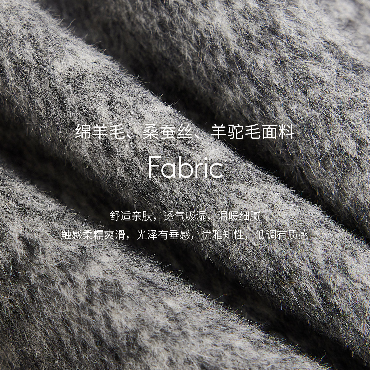 RUISHI芮时重磅驼绒桑蚕丝羊毛慵懒两穿领灰色毛呢大衣秋冬外套女