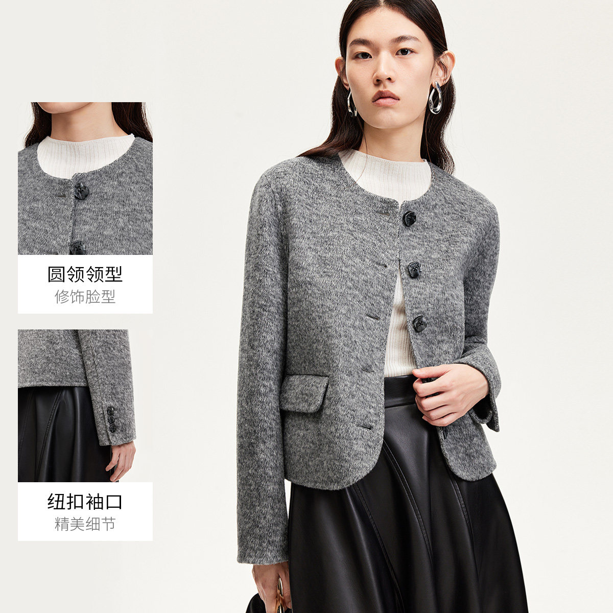 苏丽羊驼高定101801爆款大衣双排扣女短款秋冬毛呢外套