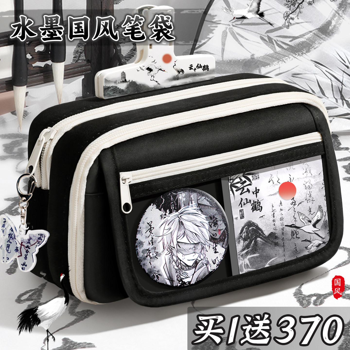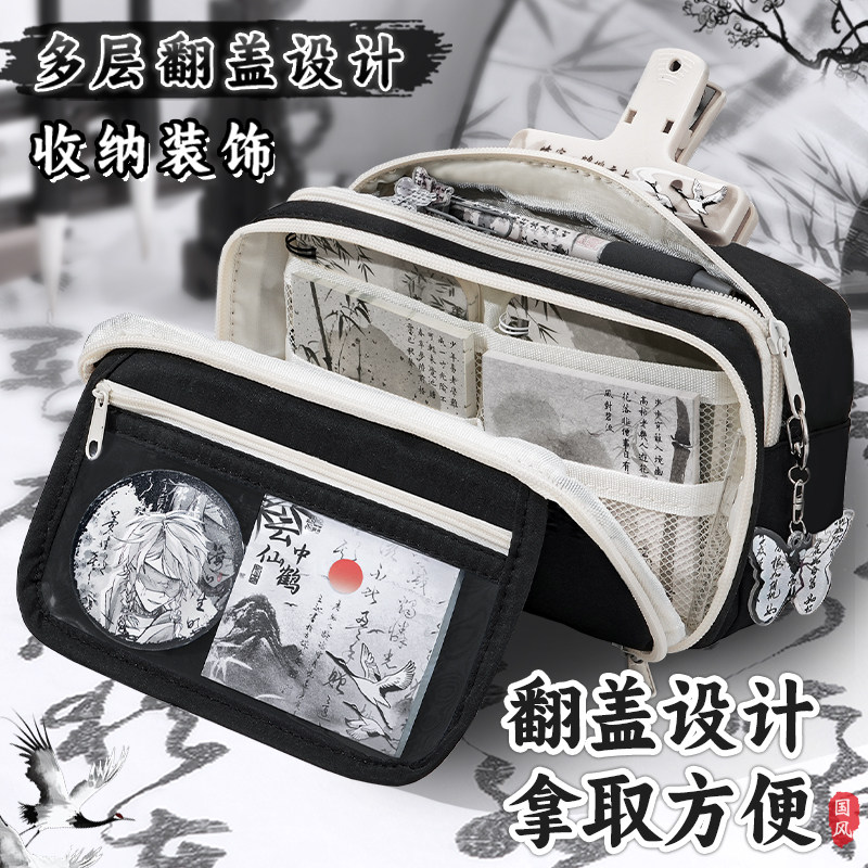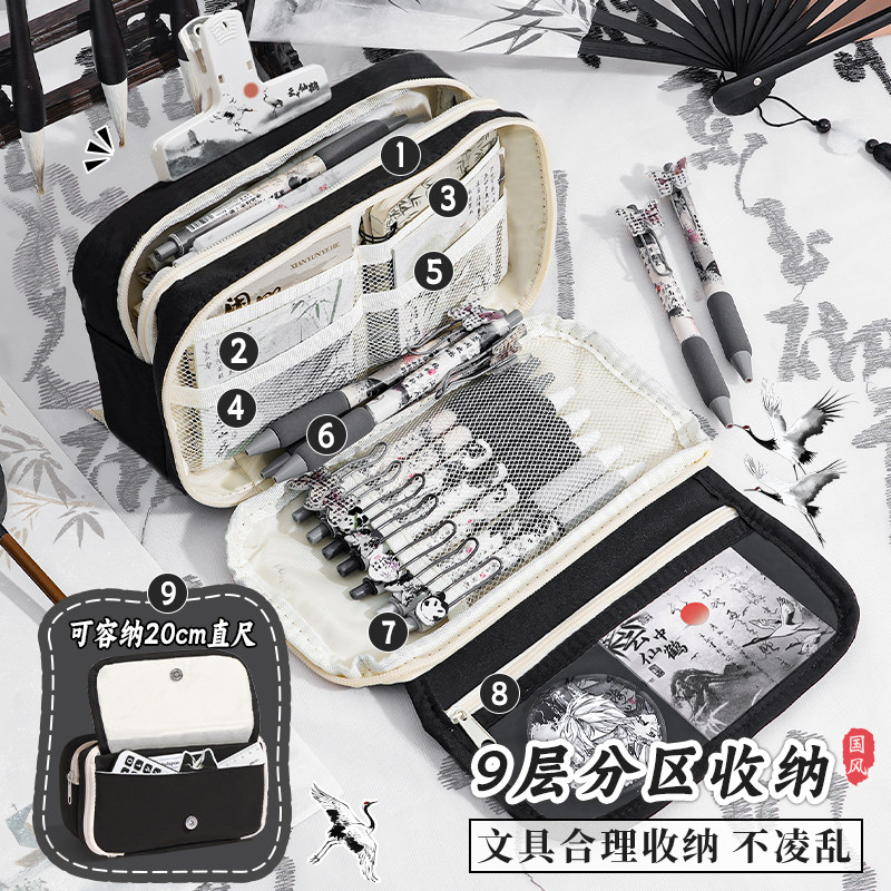 水墨梳窗画~大容量笔袋男生2026新款超火文具盒男孩款初中生高中高颜值ins风铅笔盒痛包女孩小学生文具袋套装