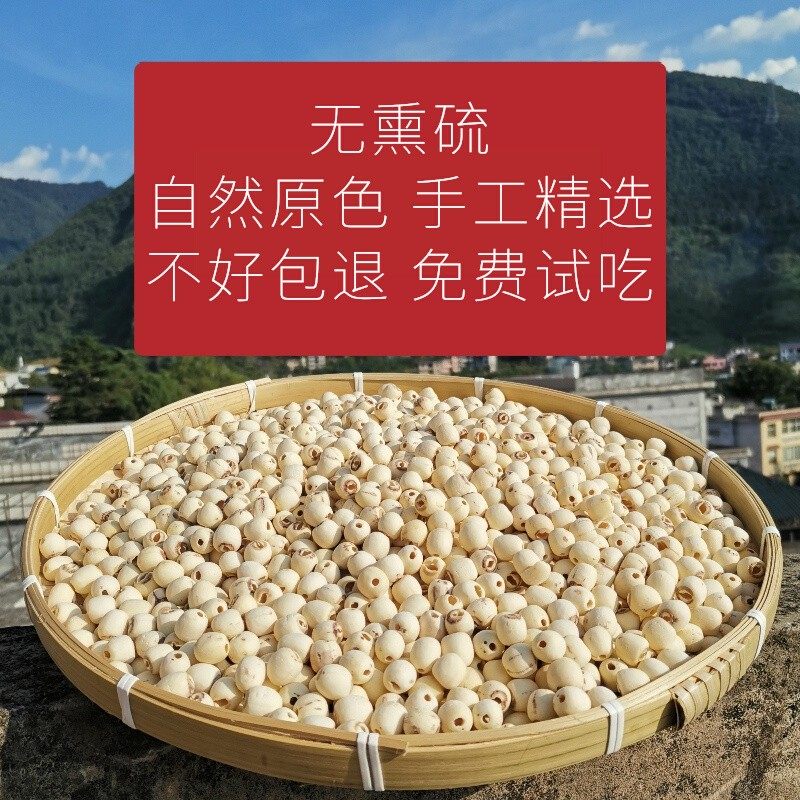 【湘潭带芯白莲子】新鲜干货天然粉糯无硫有芯磨皮莲子特价促销