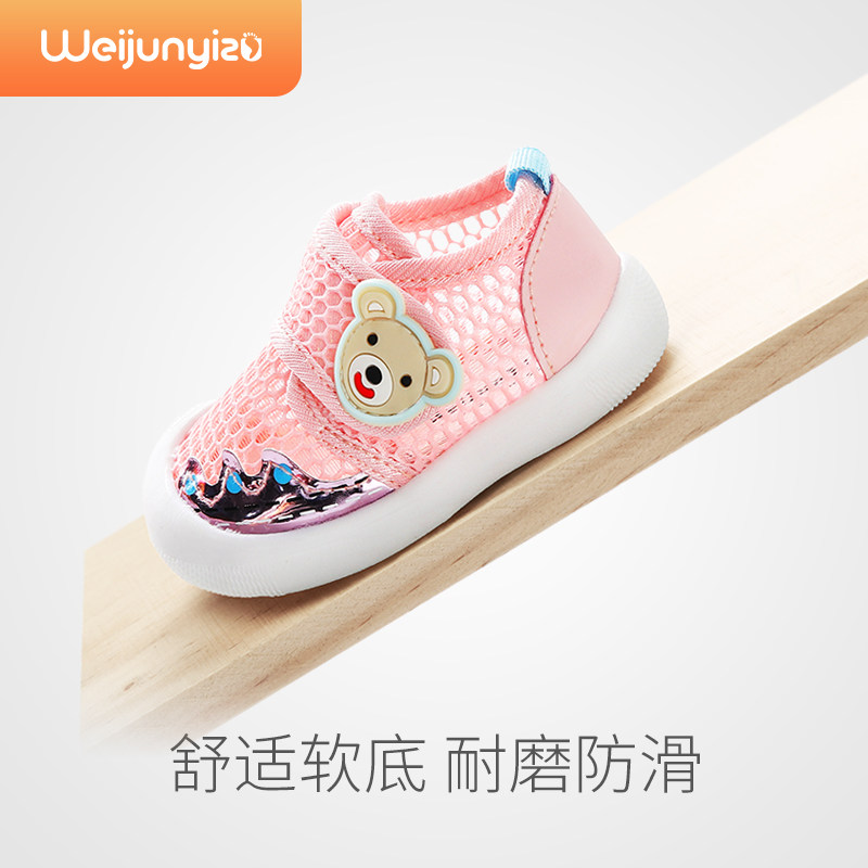 学步鞋女宝宝凉鞋夏季婴儿凉鞋女童软底1一2-3岁宝宝网面透气网鞋