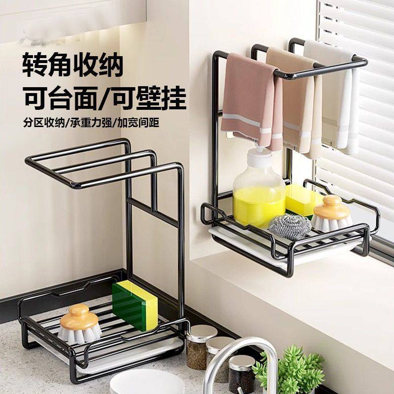 抹布架厨房沥水架免打孔台面壁挂海绵毛巾厨房用品收纳架置物架子