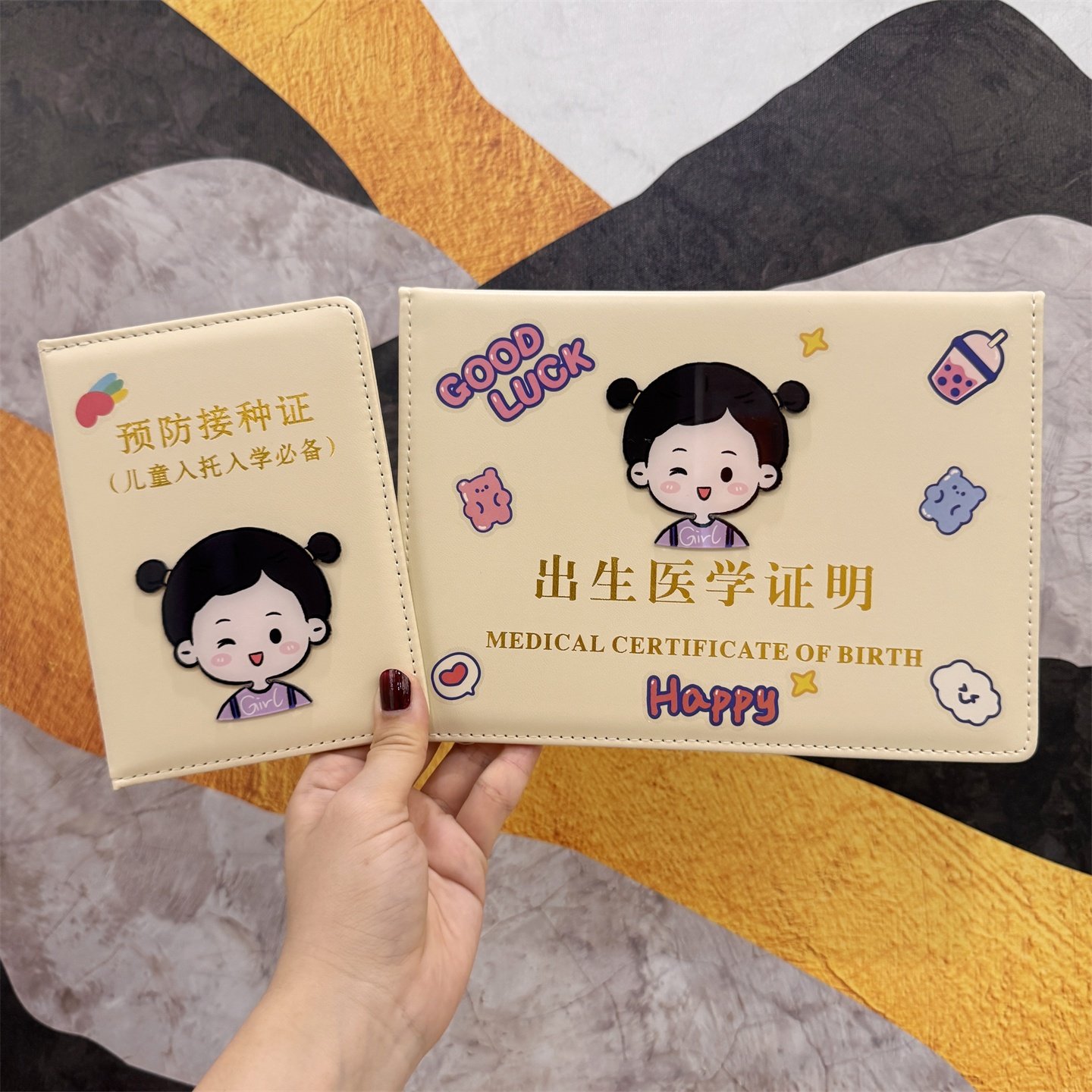 2025新版儿童出生证明保护皮套可爱宝宝疫苗本预防针接种证收纳套