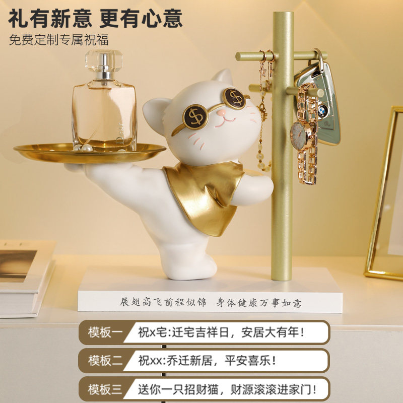 家居装饰品创意树脂招财猫摆件玄关收纳乔迁新居礼物同事送礼
