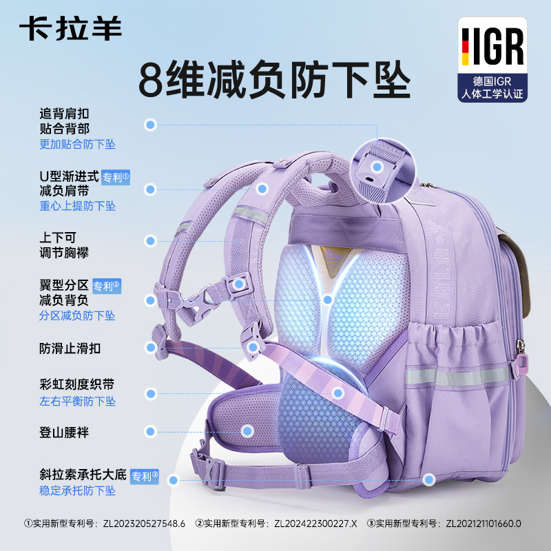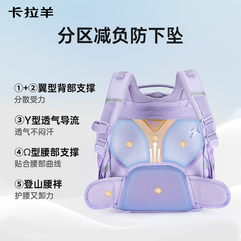 【蒋勤勤代言】卡拉羊小学生书包女减负防下坠云朵书包男小学生