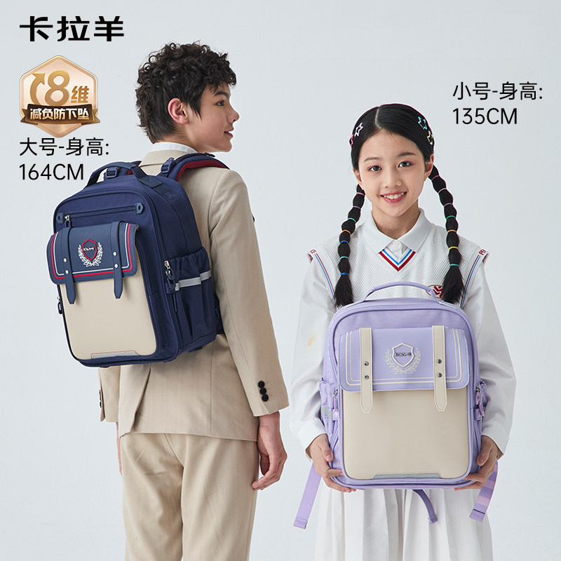 卡拉羊1-4-6年级小学生减负大嘴书包防下坠轻便大容量女双肩包男