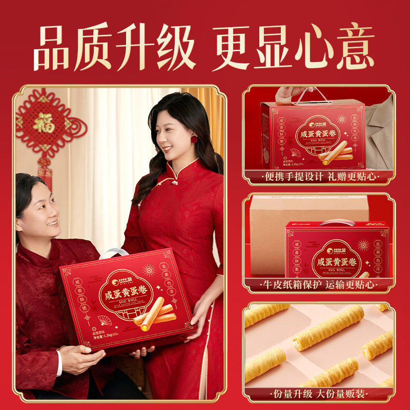 比比赞咸蛋黄鸡蛋卷年货礼盒装送礼团购饼干小零食休闲食品大全批