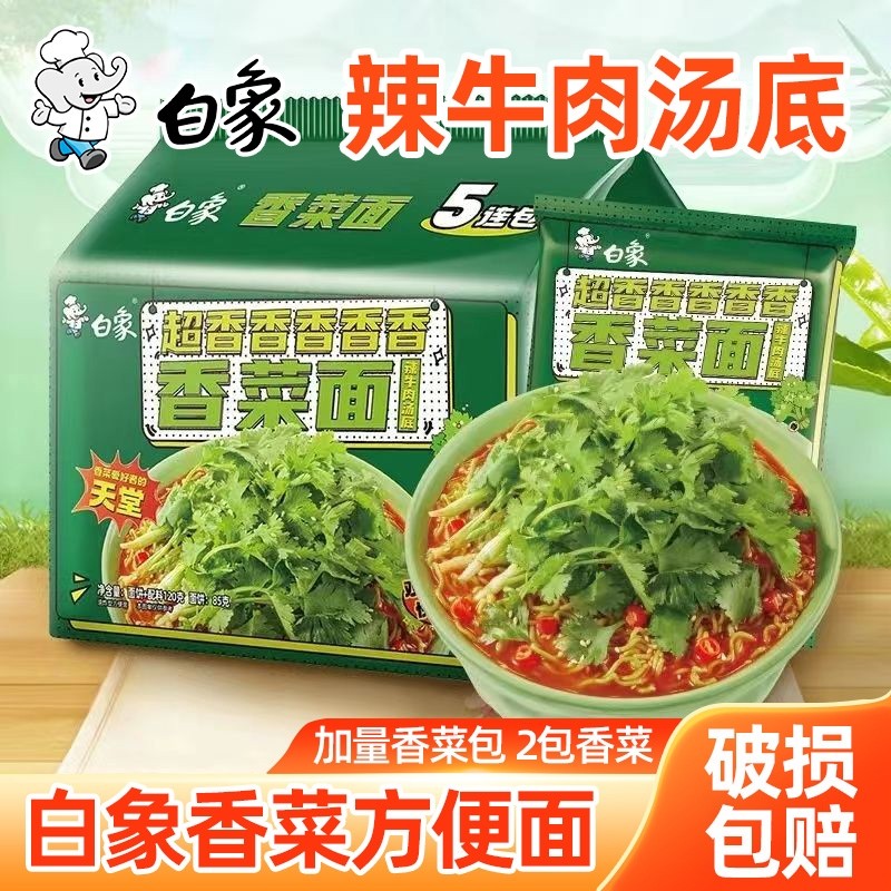白象方便面香菜面袋装辣牛肉汤底泡面免煮冲泡宿舍速食食品夜宵