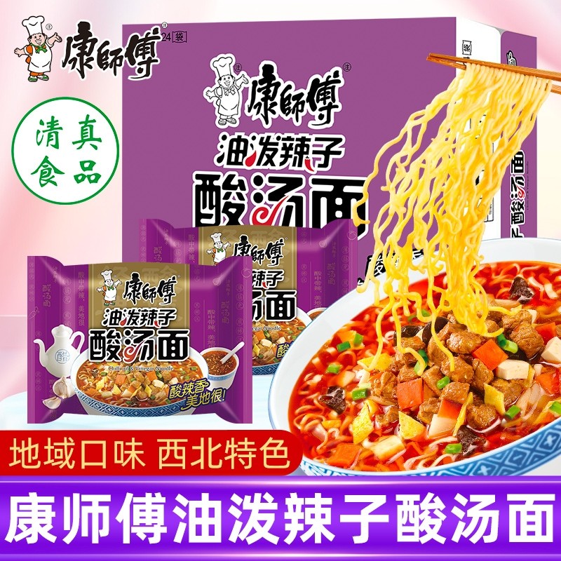 康师傅油泼辣子酸汤面袋装整箱方便面速食泡面夜宵代餐清真食品