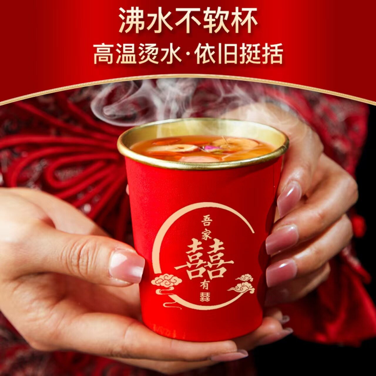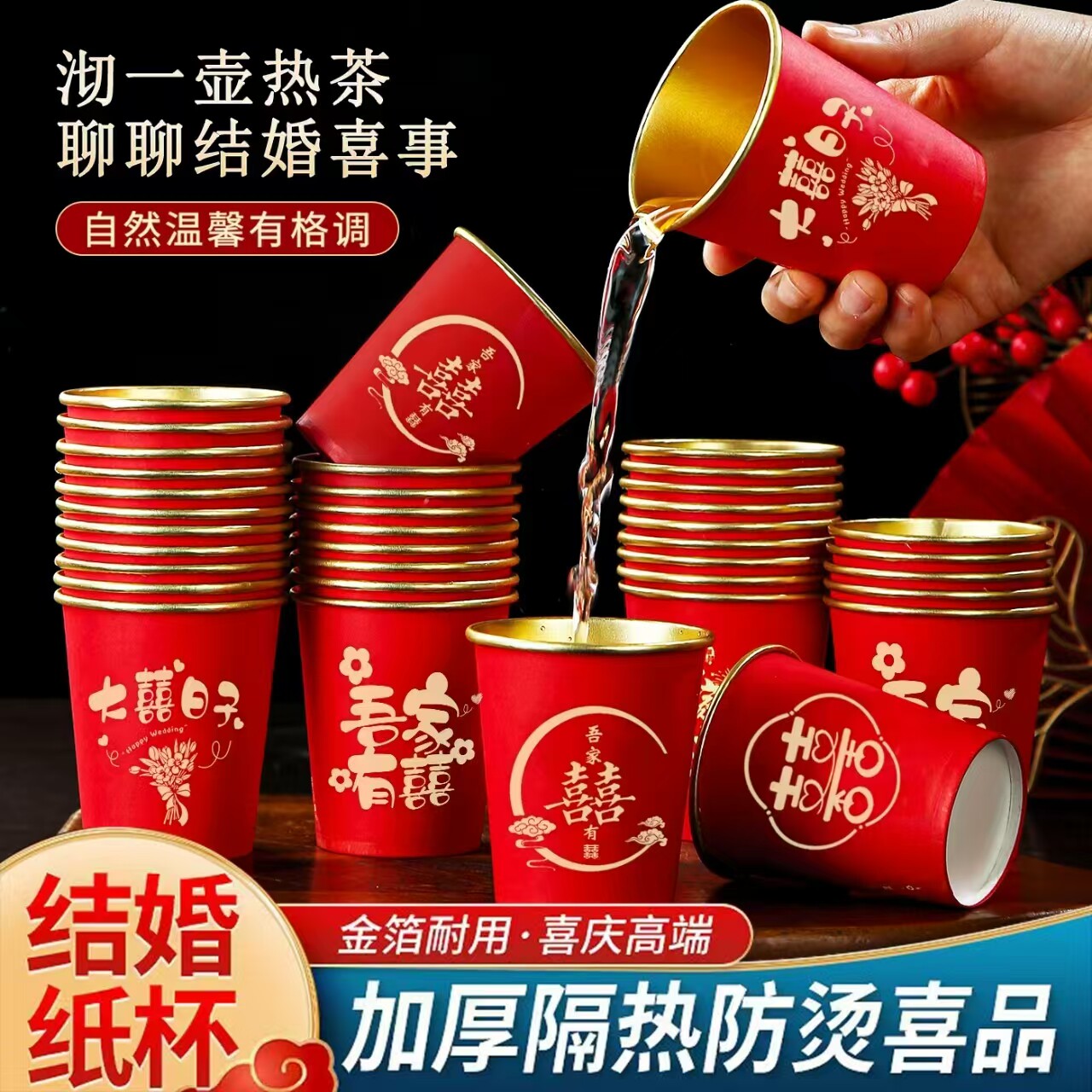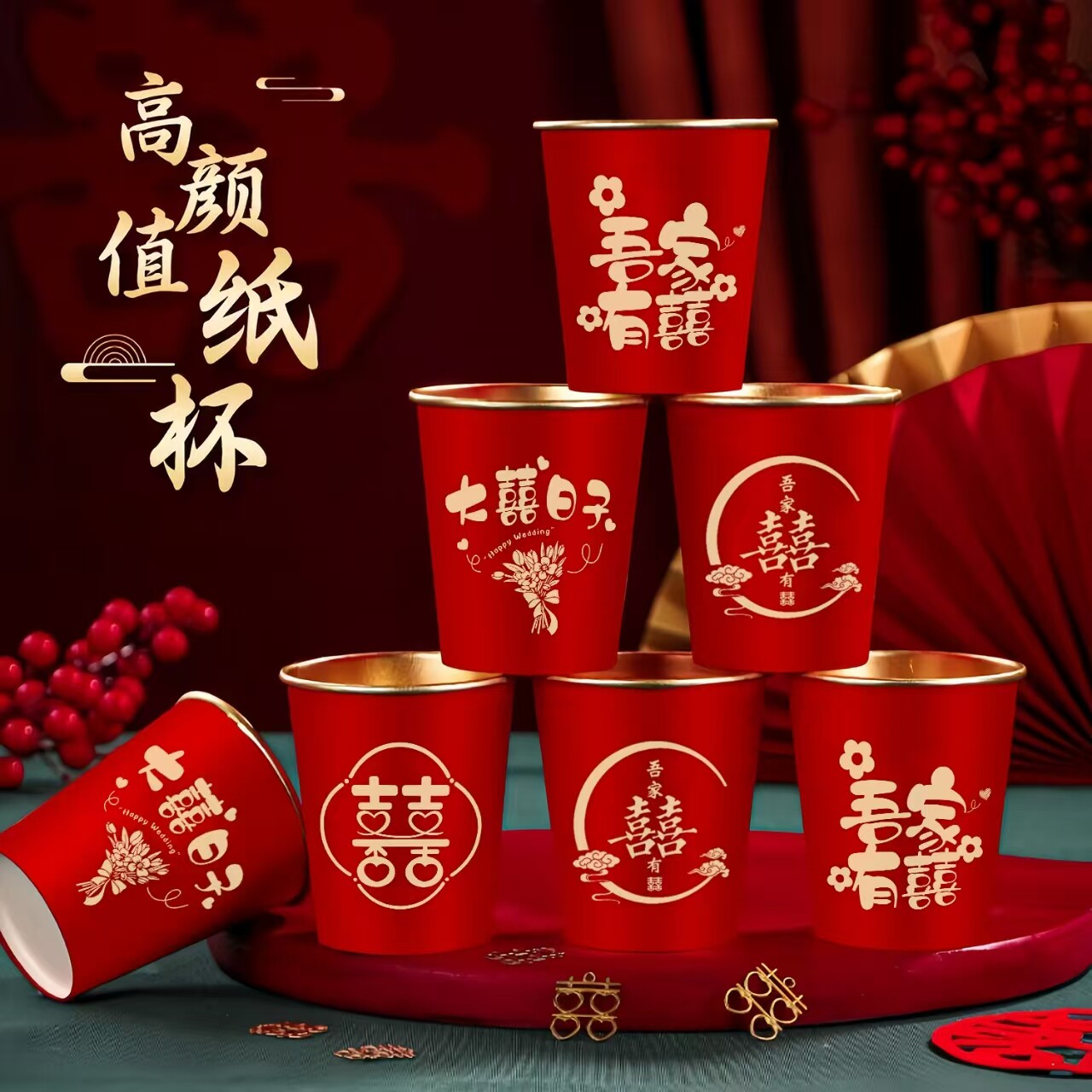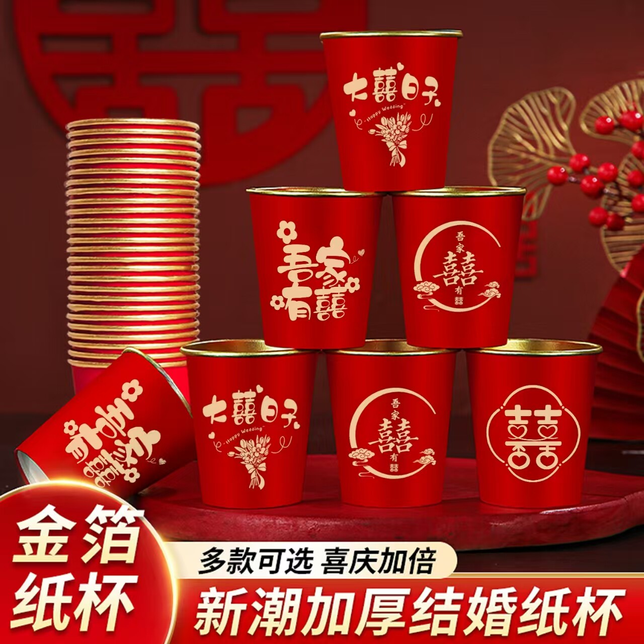 结婚金箔一次性水杯纸杯子加厚红色婚礼喜杯订婚婚宴婚庆用品大全