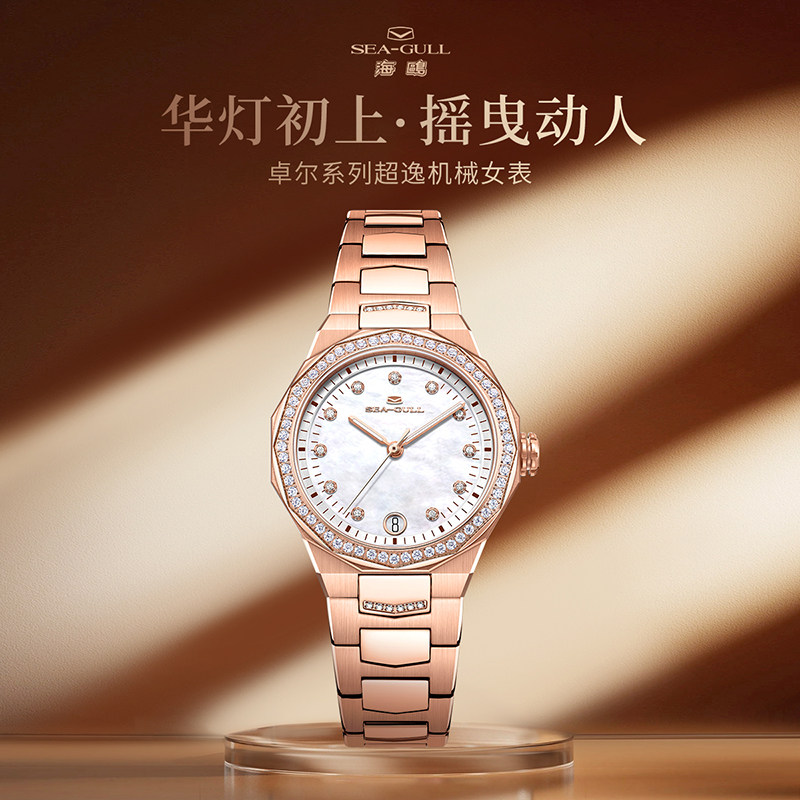 海鸥表手表女款轻奢机械女表几何设计贝母盘镶钻腕表1140L