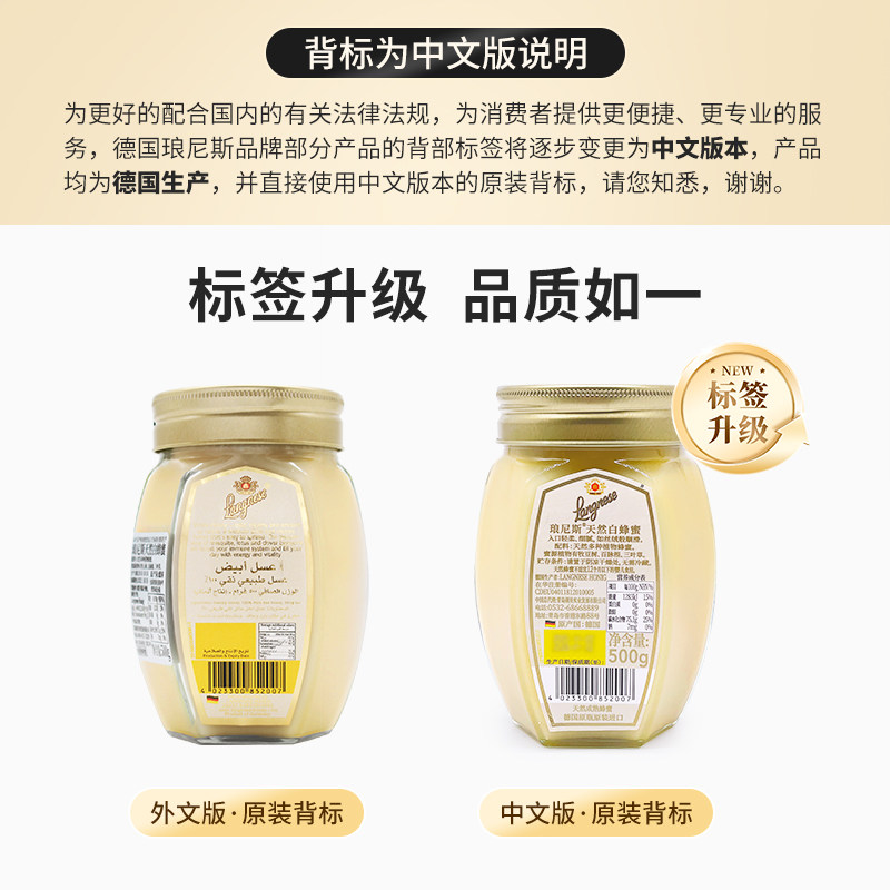 德国原装进口琅尼斯三叶草白蜜天然进口蜂蜜抹面包泡水白蜂蜜500g