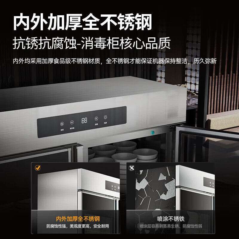 荣事达消毒柜商用双门大容量立式不锈钢碗柜酒店餐厅消毒烘干一体