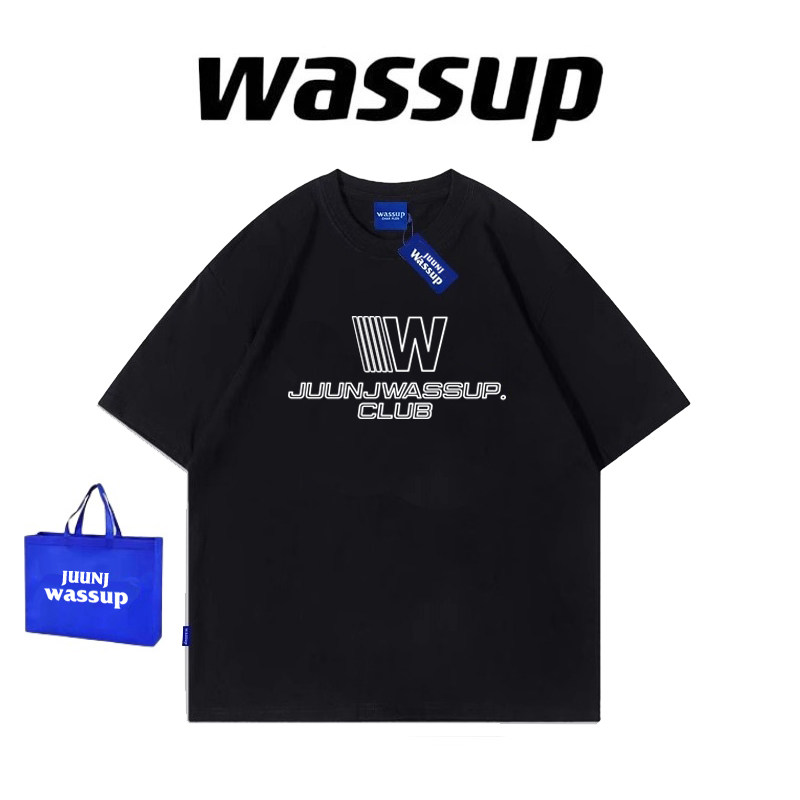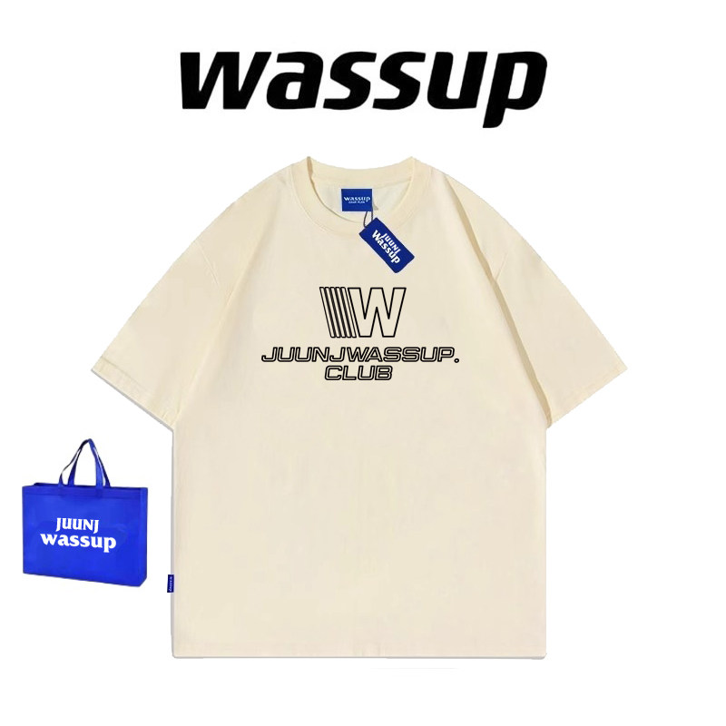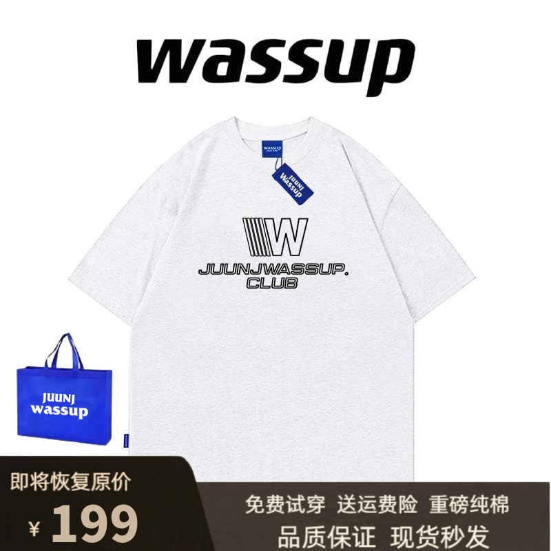 WASSUP国潮牌重磅纯棉短袖男女夏季美式复古字母T恤情侣宽松上衣