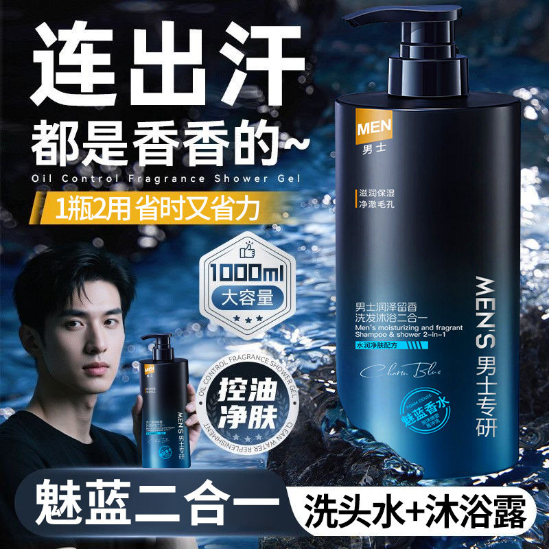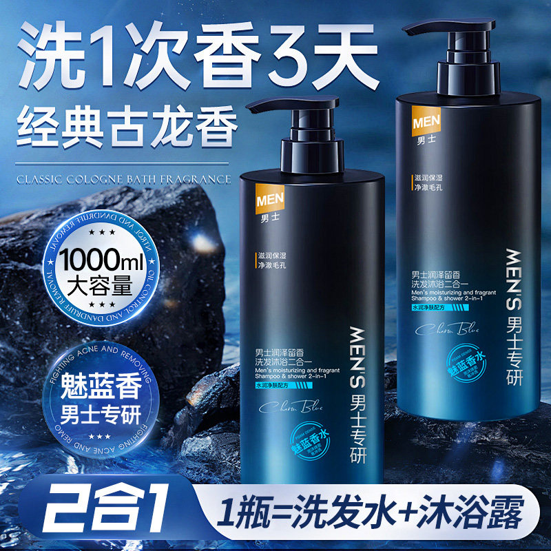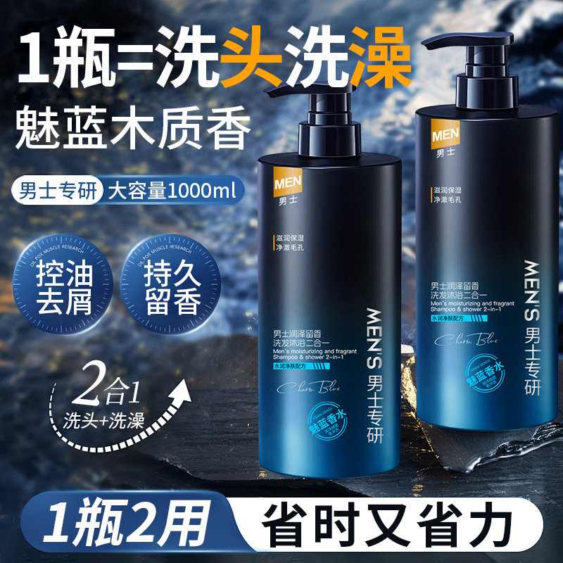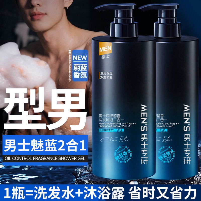 二合一洗发水男士专用去油蓬松旅行学生洗头膏沐浴露套装香氛控油