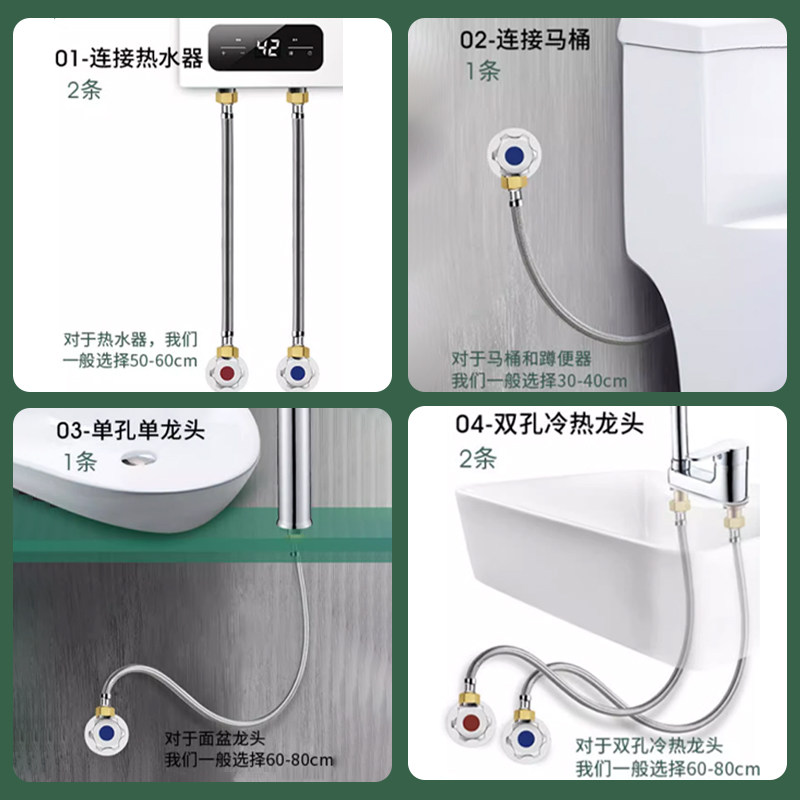 铜头不锈钢编织进水软管冷热水软管热水器水管4分龙头配件马桶