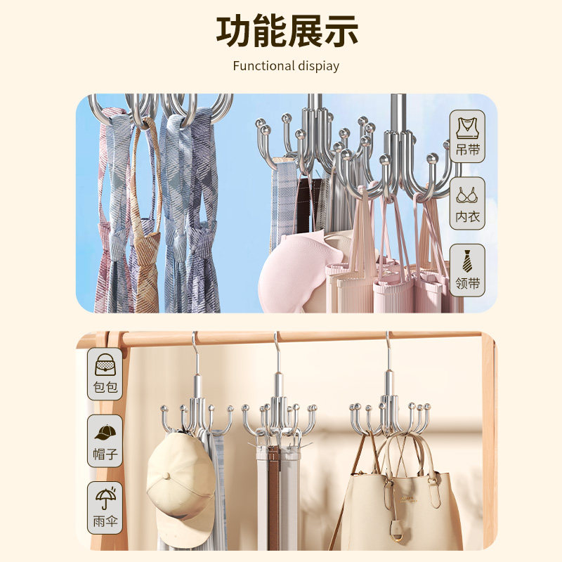 宿舍八爪挂钩家用不锈钢挂包架多功能包包衣帽挂衣钩旋转收纳神器