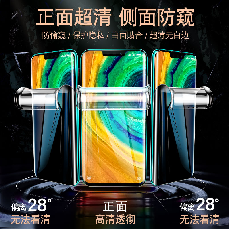 华为mate30防窥膜可用指纹解锁mate40pro+支持不影响识别rs保时捷防偷窥屏60手机水凝膜20x钢化50贴膜70p适用