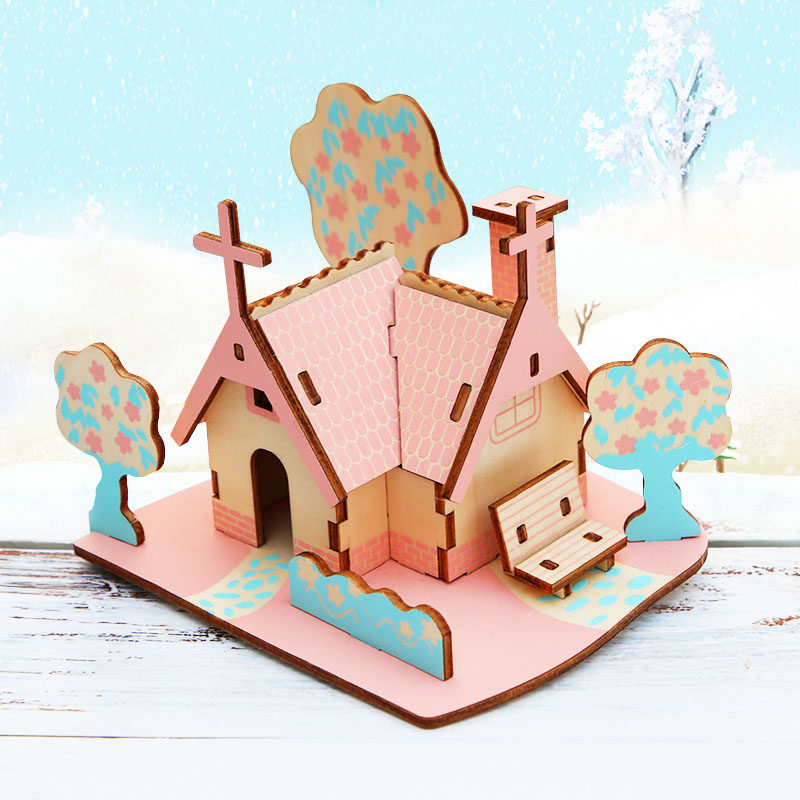 儿童3d立体拼图3到6岁上房子积木拼图女孩3diy手工小屋子益智玩具