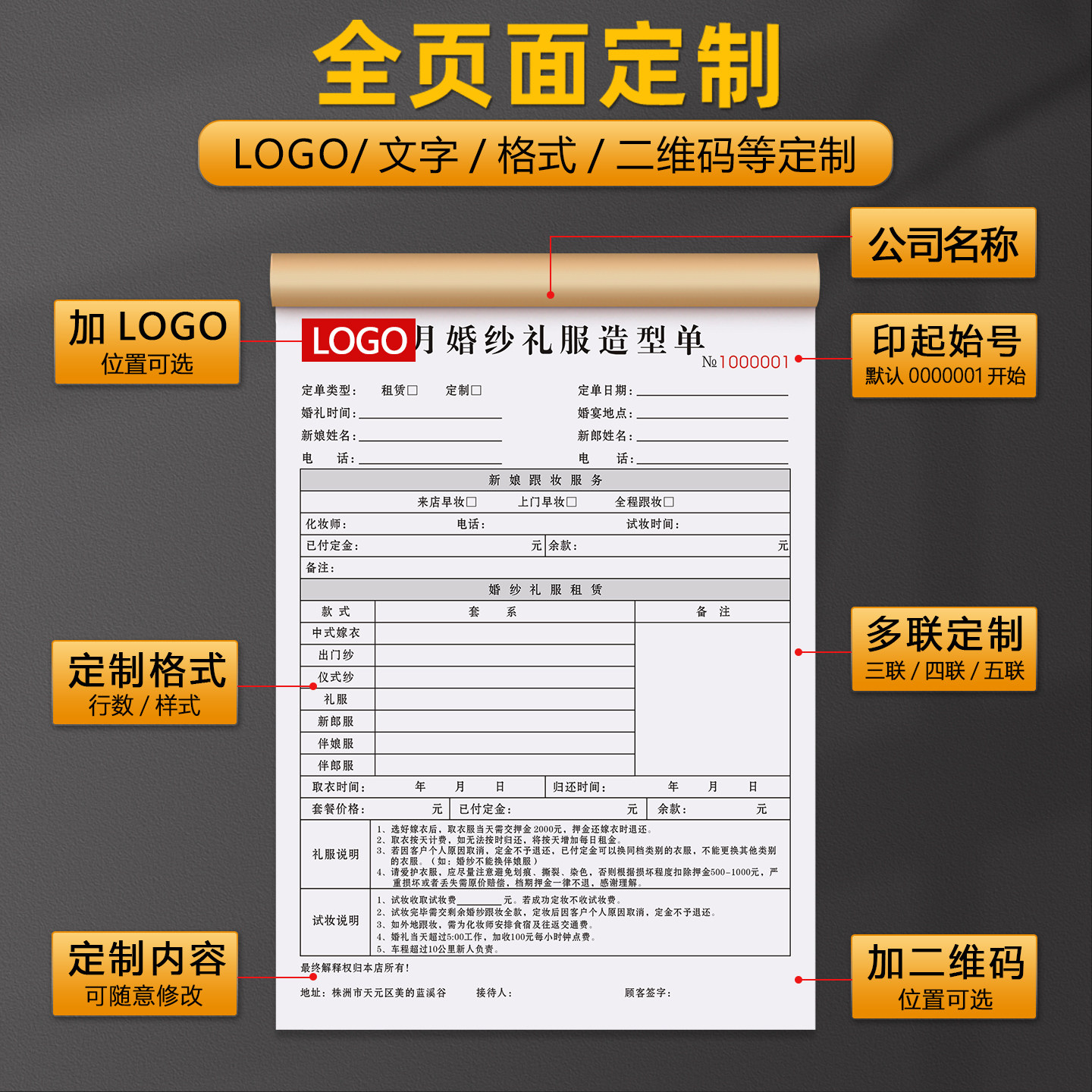 【婚纱礼服造型单】礼服馆租赁合同新娘化妆预约表美妆跟妆订单本