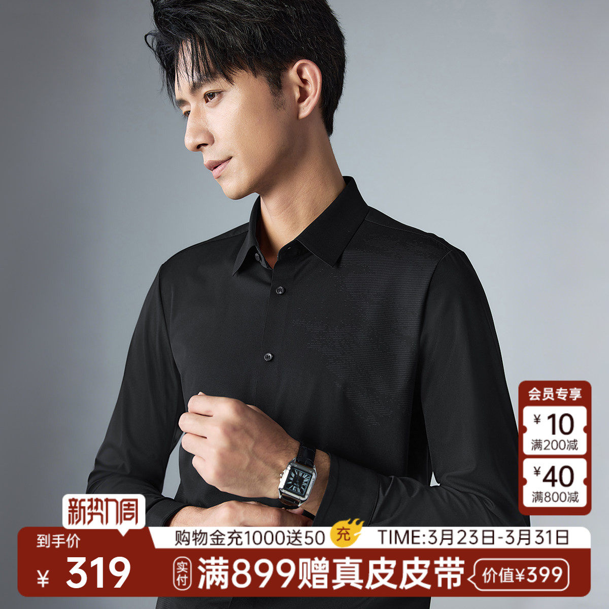 【云感衬衫】金利来春夏新款莫代尔弹力抗皱男士商务长袖白色衬衣