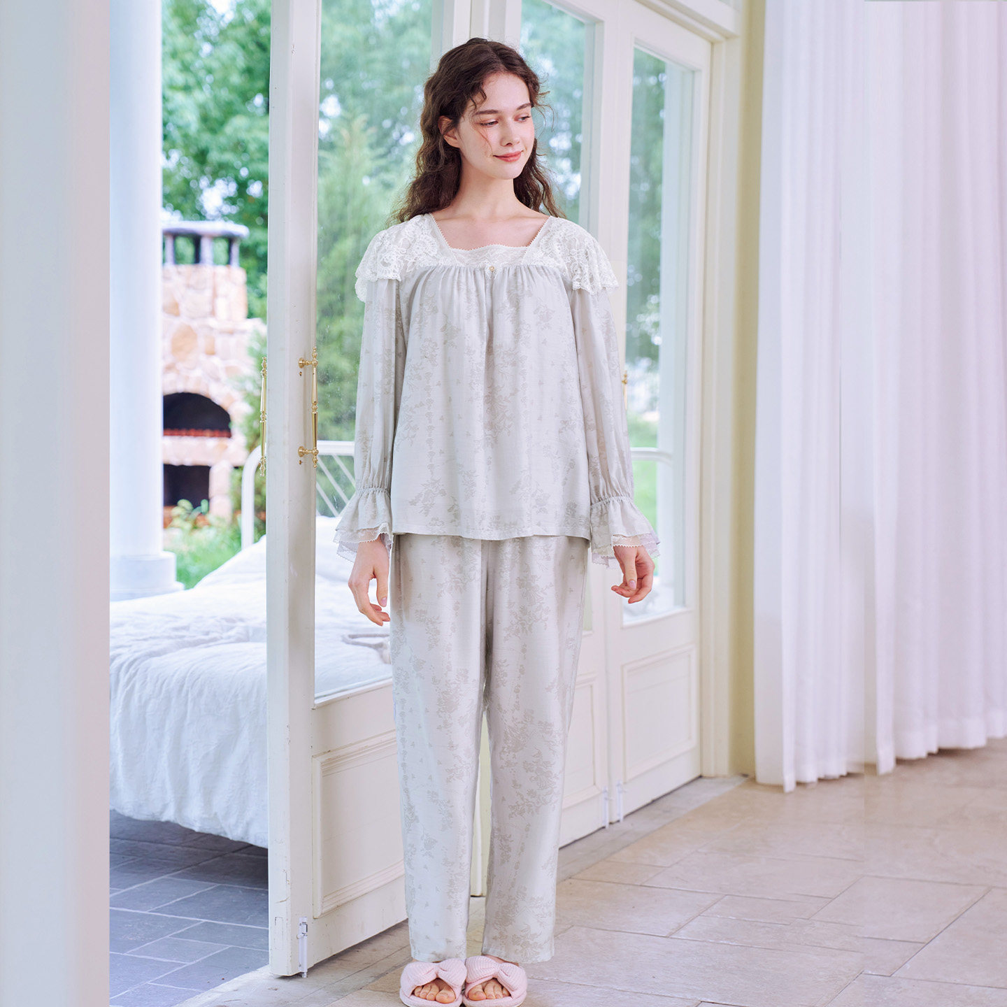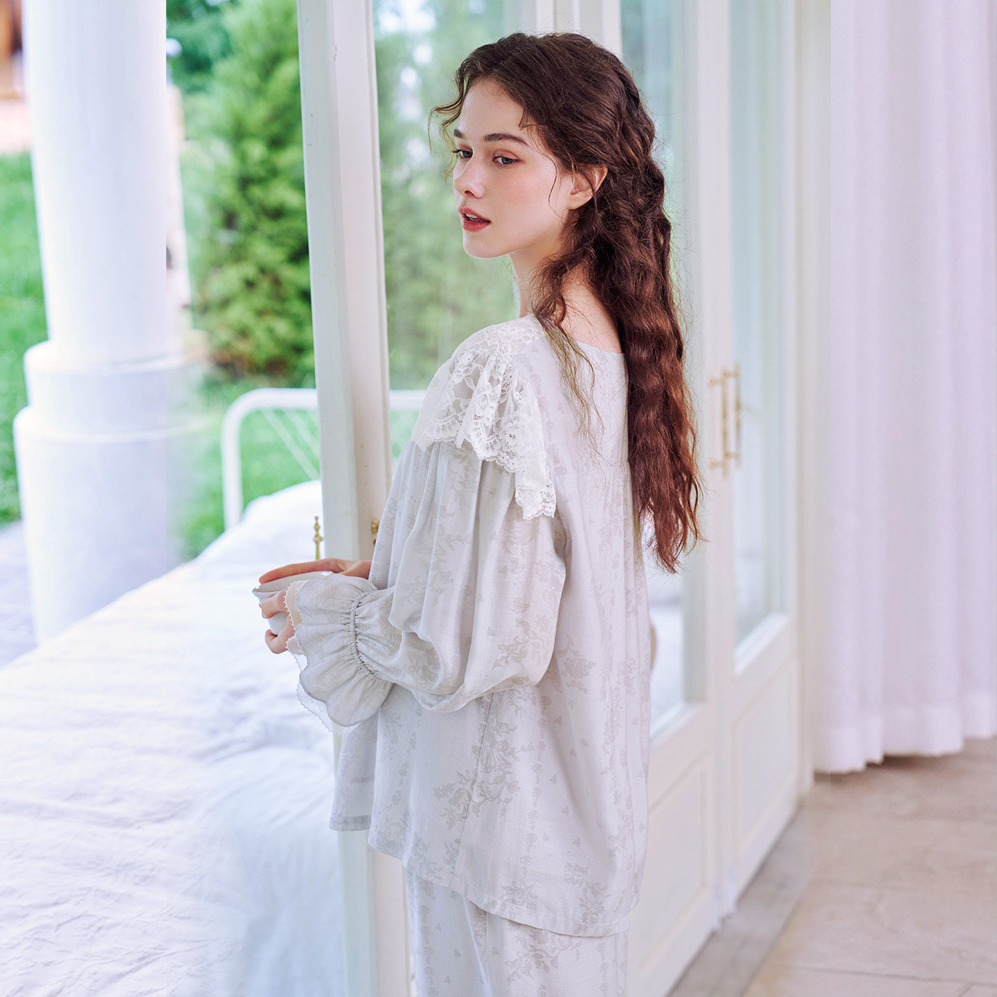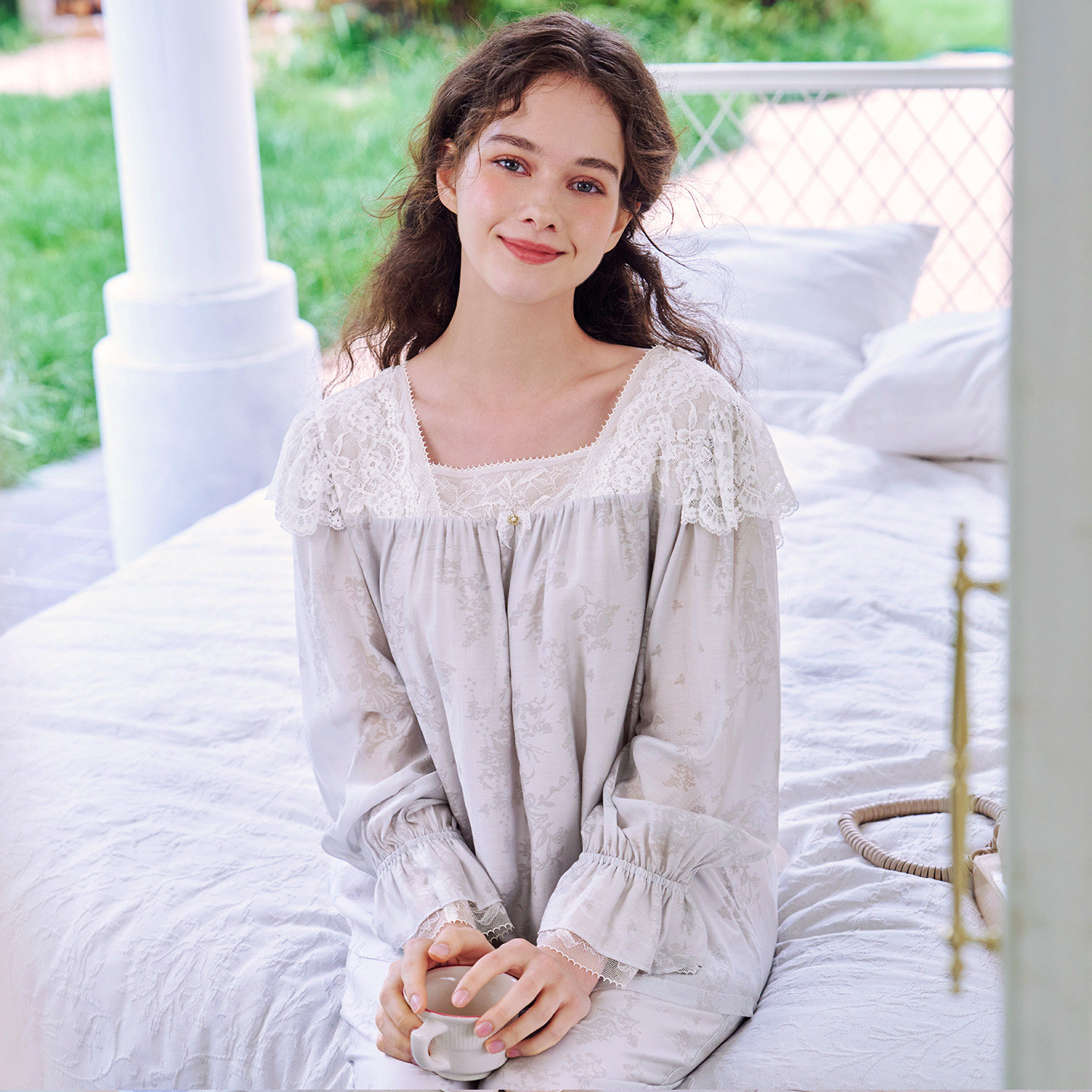 美标2025春秋新品长袖睡衣女里料纯棉全棉复古宫廷公主风家居服冬