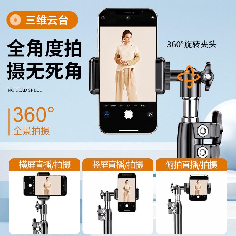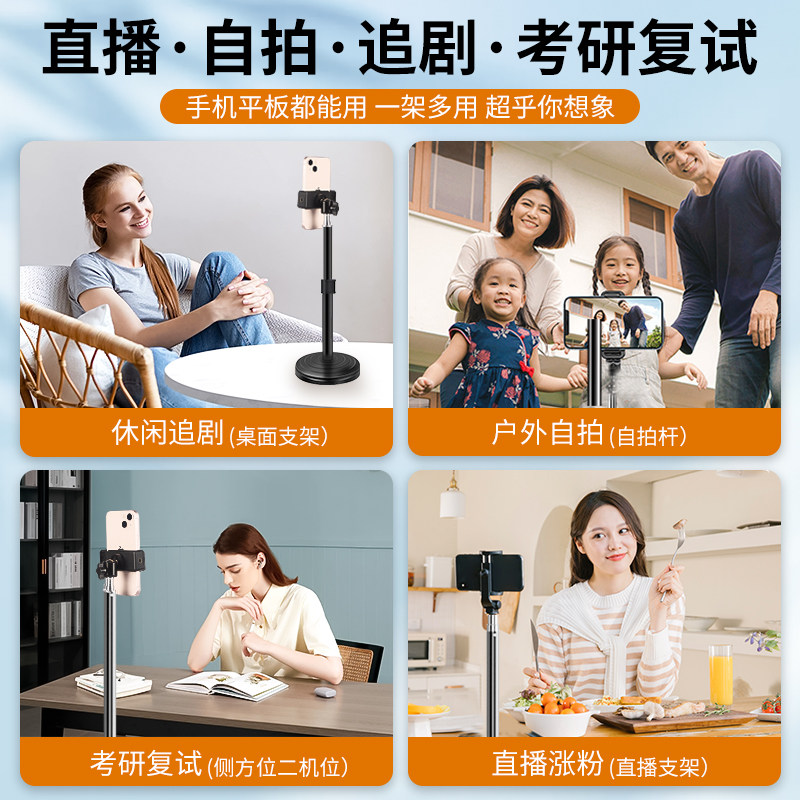 手机拍摄支架直播专用自拍杆三脚架落地式多功能支撑架通用捭机架户外便携伸缩升降网课考研复试架子三角支夹