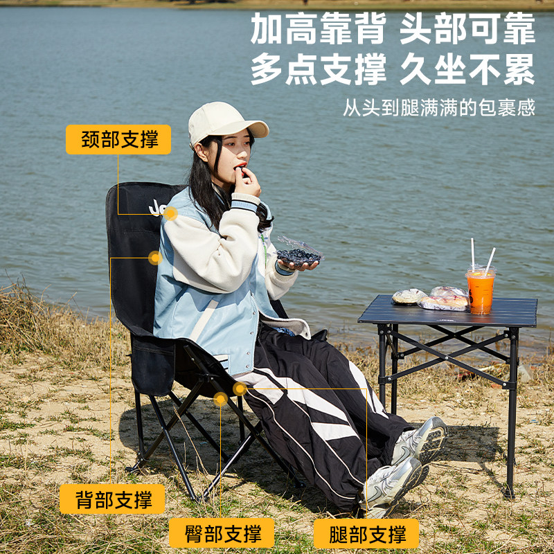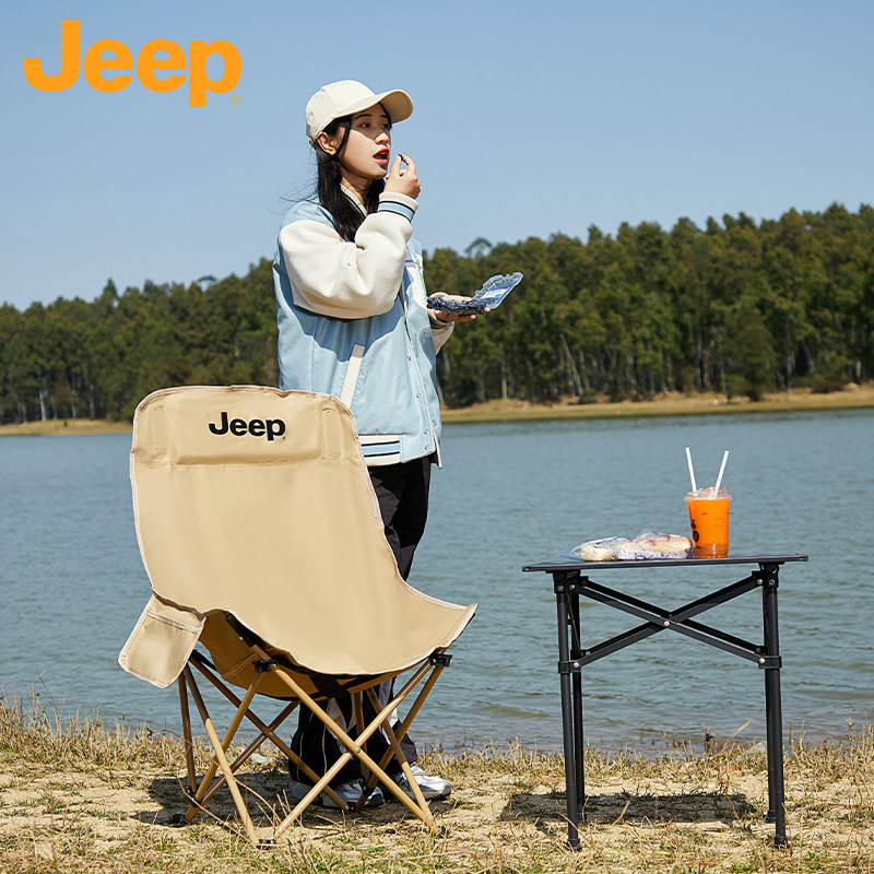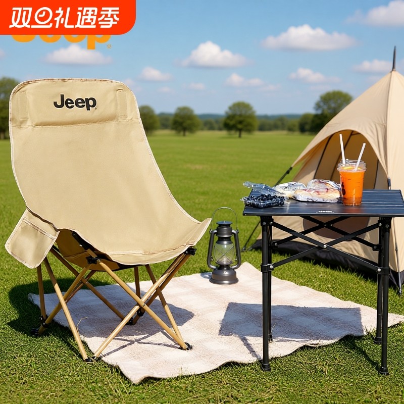 JEEP户外折叠椅高靠背月亮椅便捷式露营野餐家用午休折叠椅子凳子