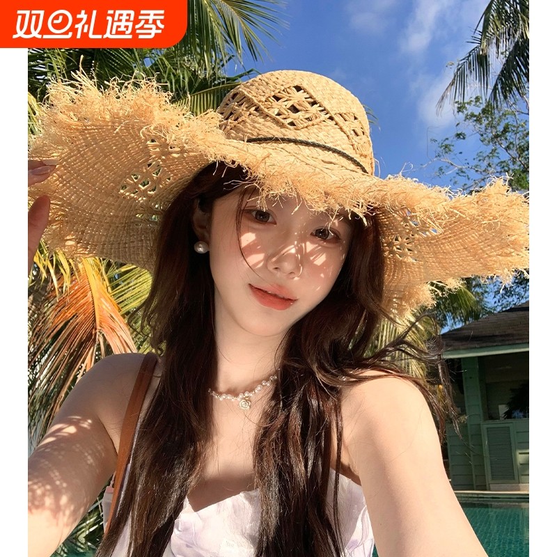镂空编织草帽女夏季2025新款户外海边度假风防晒遮阳大帽檐太阳帽