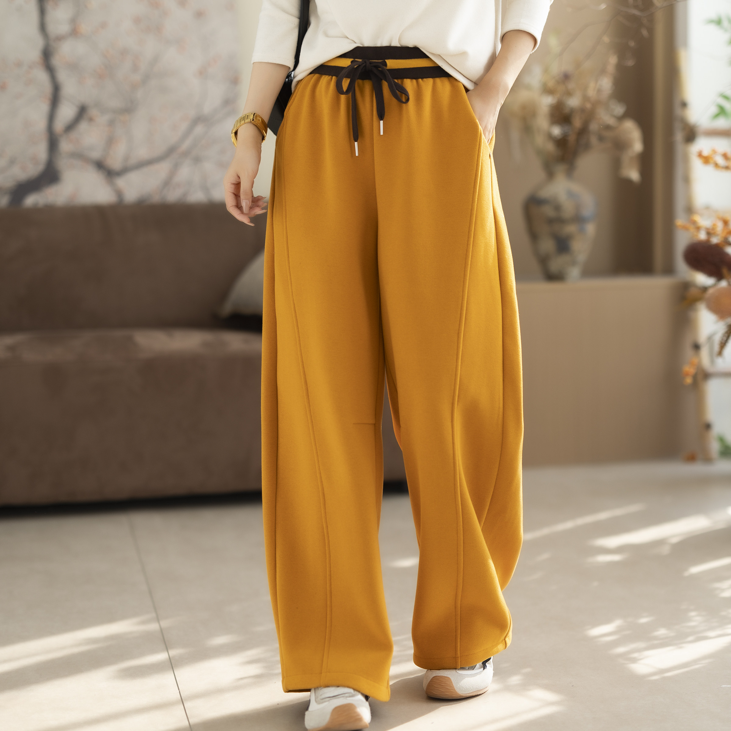 糯米裤女羊羔绒垂坠感软糯加绒加厚秋冬韩系慵懒松弛感阔腿裤TB