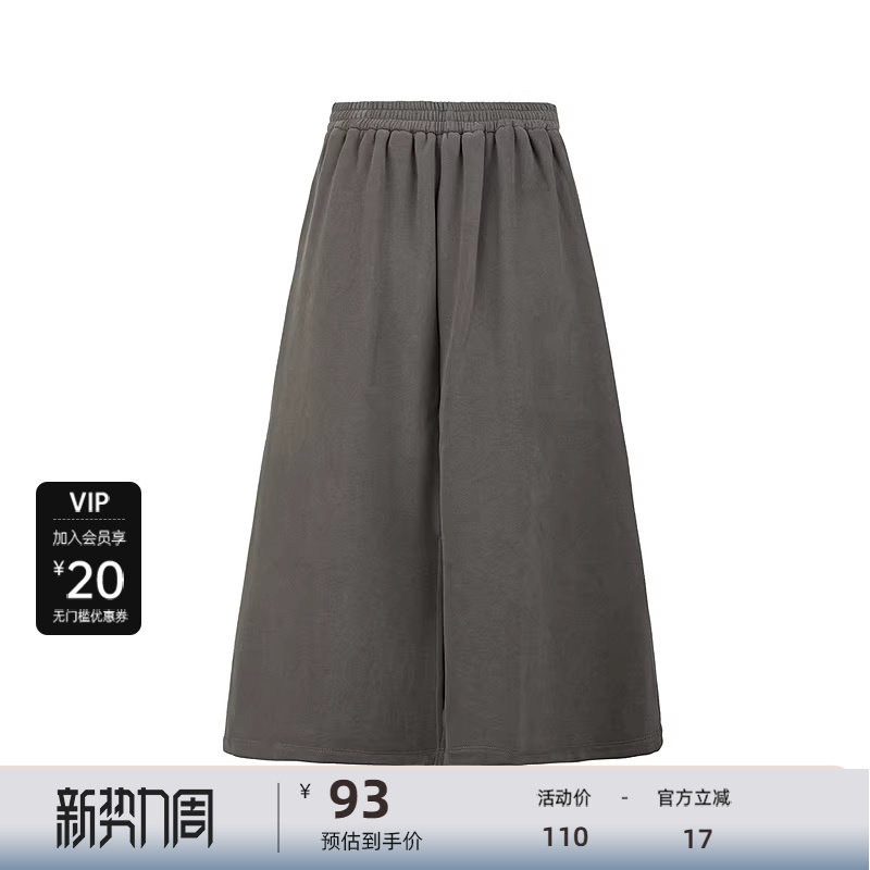 森马半身裙女夏季松紧腰肌理垂感分割A字裙宽松松弛感山本风长裙