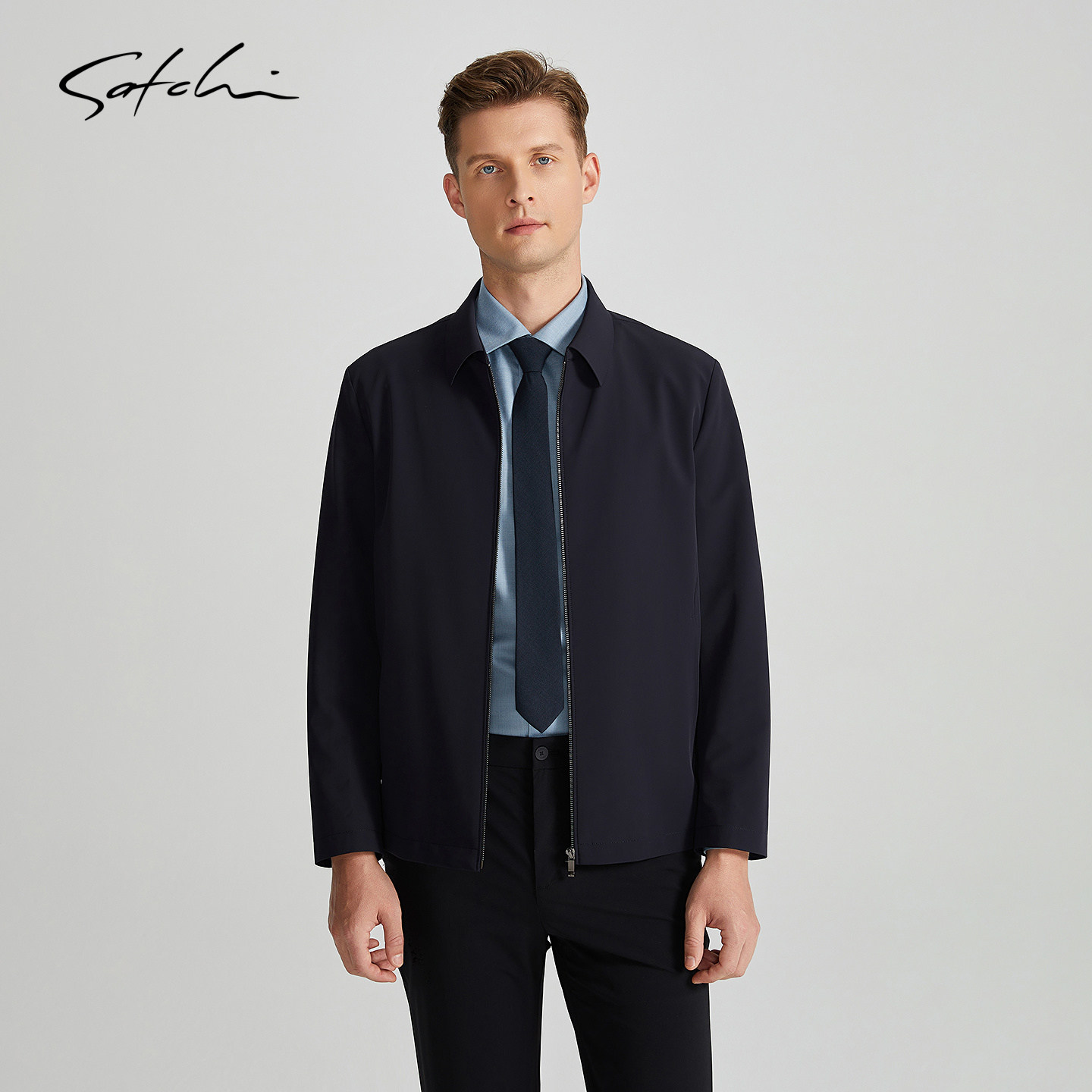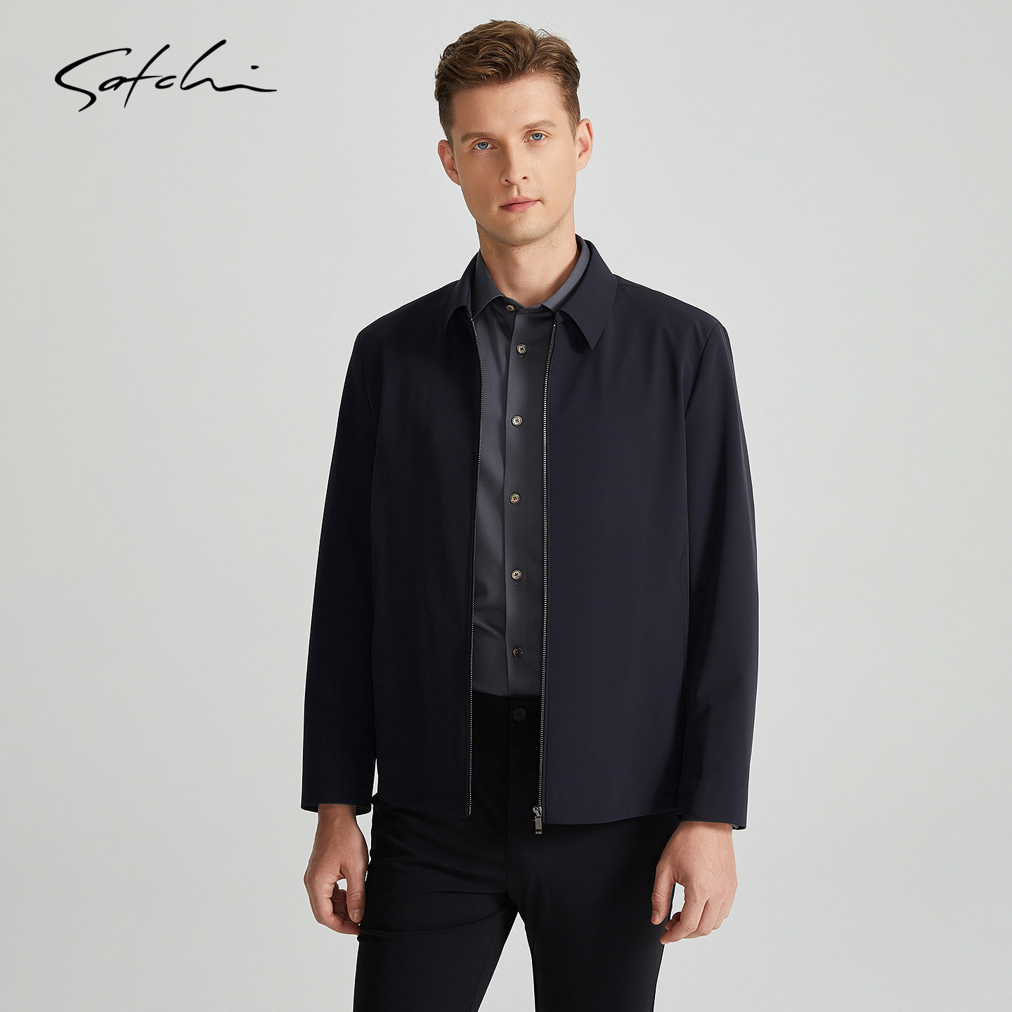 SATCHI沙驰男装男士行政夹克2025春季新款高端商务干部翻领外套男