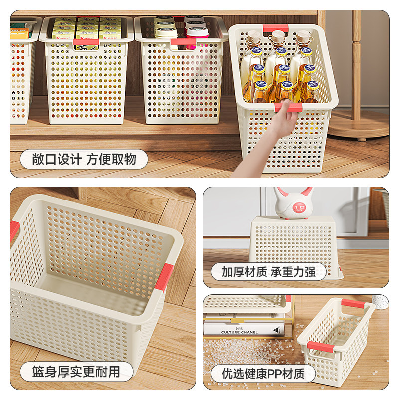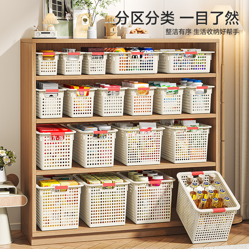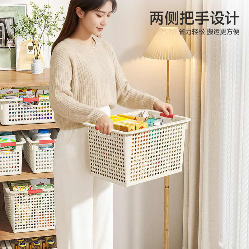塑料收纳筐桌面零食文件收纳盒杂物收纳框置物篮窄口长方形收纳篮