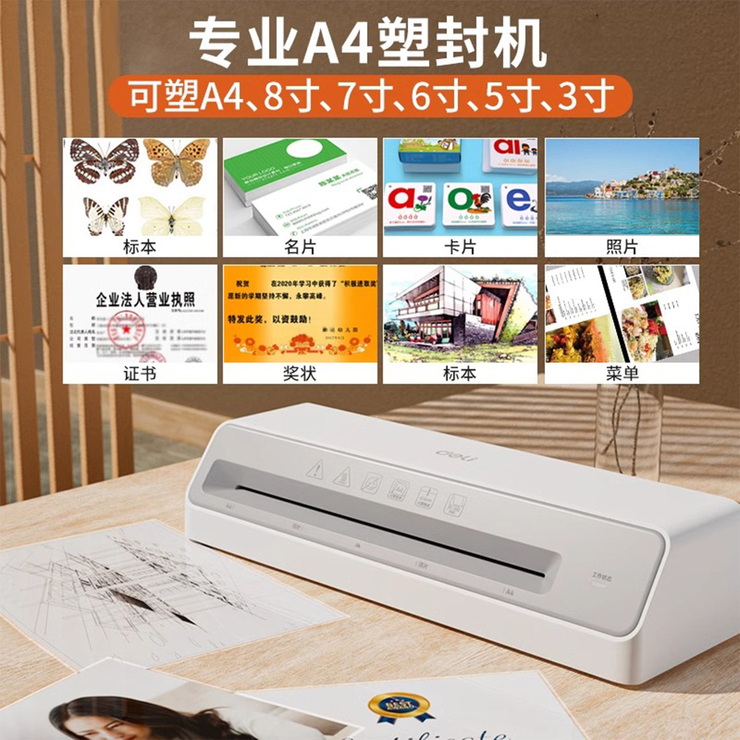 得力塑封机GQ405小型办公家用覆膜机A4文件相片照片33939过塑机