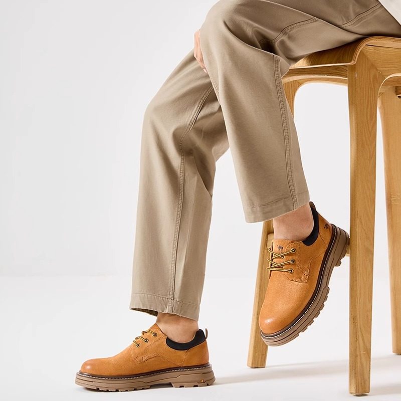 骆驼男鞋2025秋季新款复古休闲马丁鞋男增高百搭大头低帮工装鞋男
